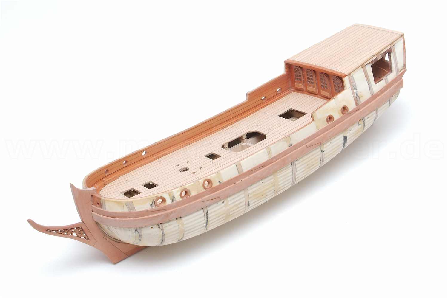 520 Std.: Ruder fertiggestellt, Dekor komplettiert, Rumpfbau abgeschlossen