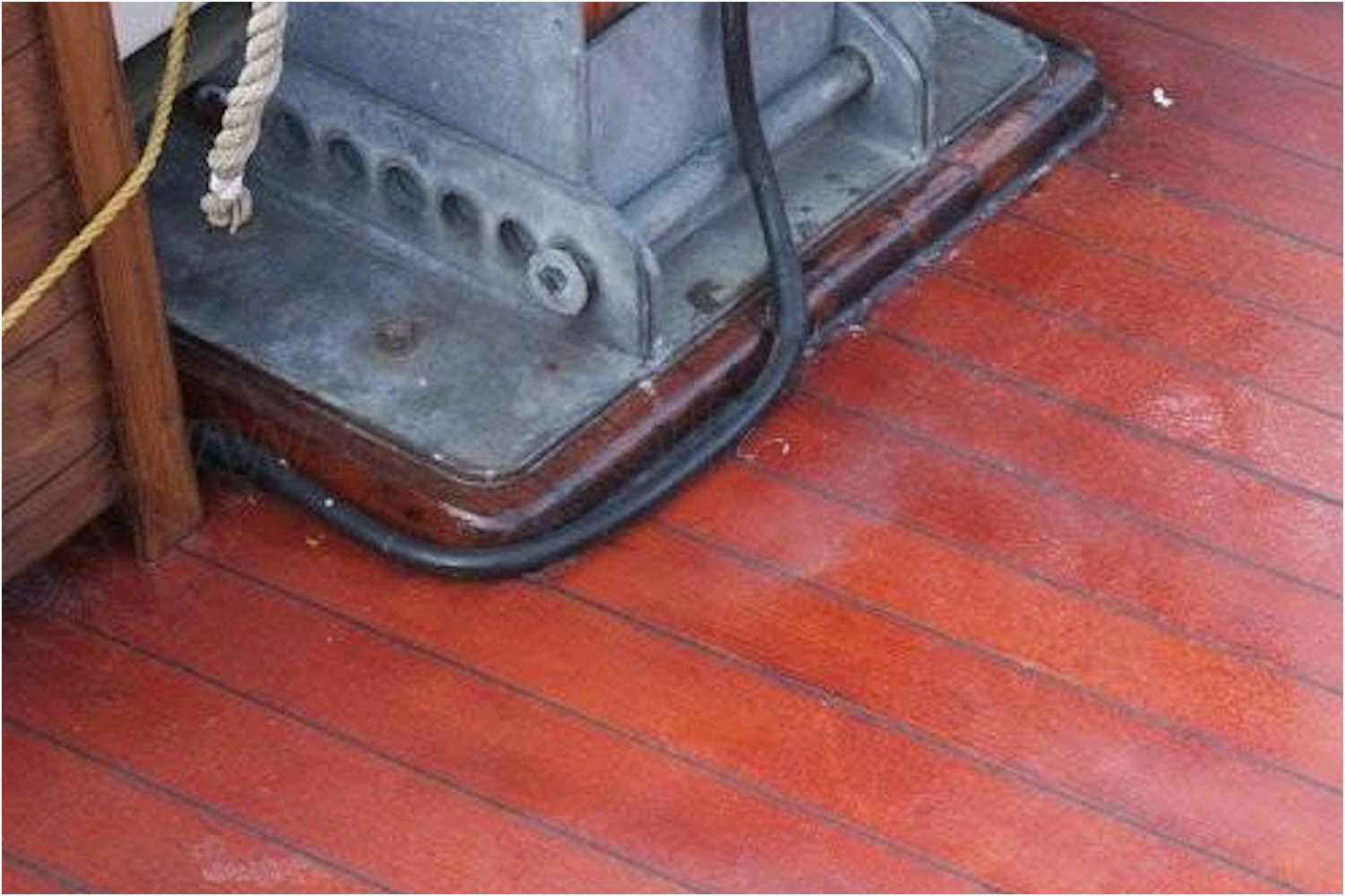 Beispiele naturbelassener Teak-Decks. Im trockenen Zustand grau, färbt sich dieses Holz rötlich-braun, wenn Wasser überkommt.