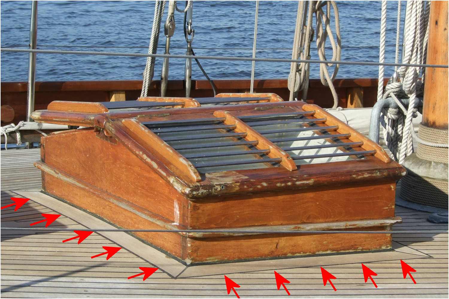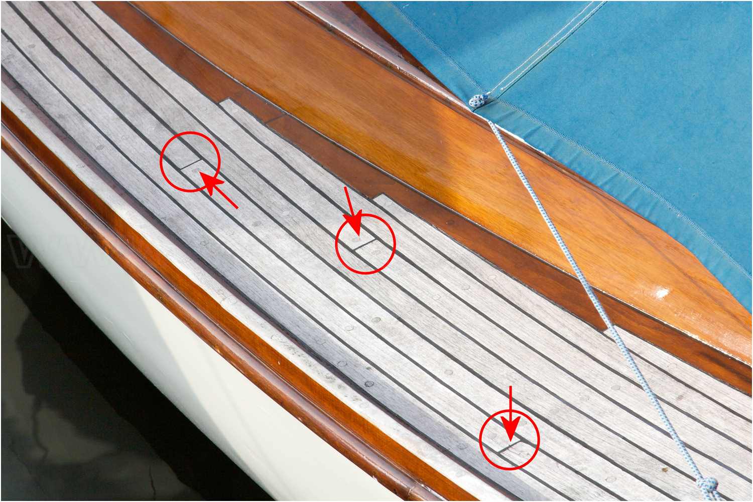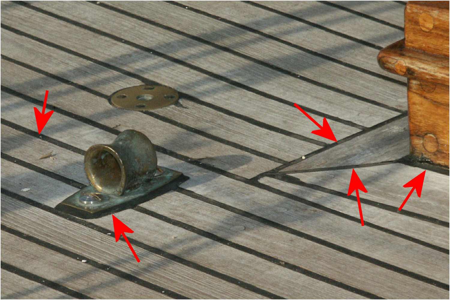Ein beplanktes Deck ist ohne weitere Maßnahmen niemals dicht, da sich Holz beim Arbeiten in seiner Breite verändert und so bei zu eng verlegten Decksplanken gewaltige Kräfte auftreten. Aus diesem Grund werden die Planken schon mit etwas Abstand verlegt und anschließend mit einer elastischen Masse ausgegossen, kalfatert.