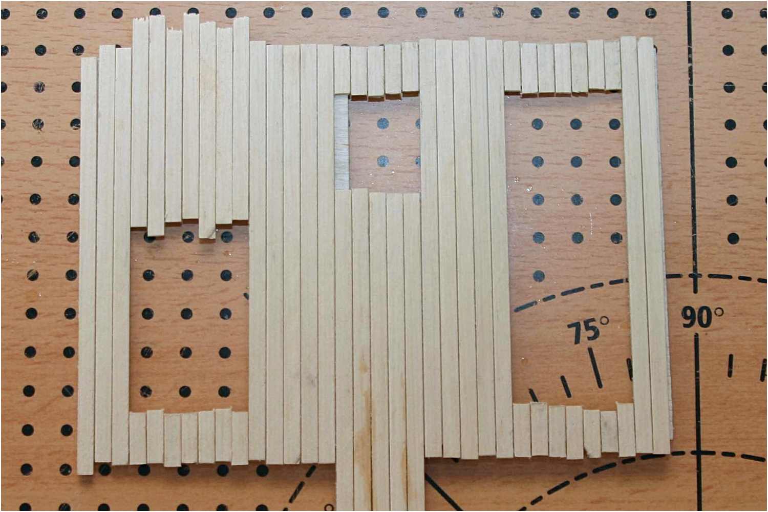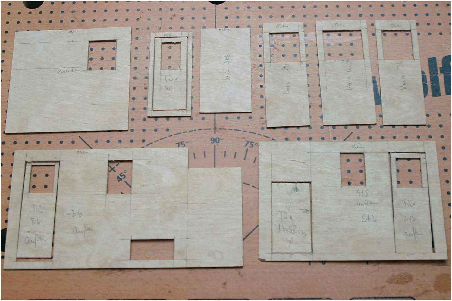 Die Seitenwände des Deckshauses eines Fischkutters, aus 1 mm Sperrholz.