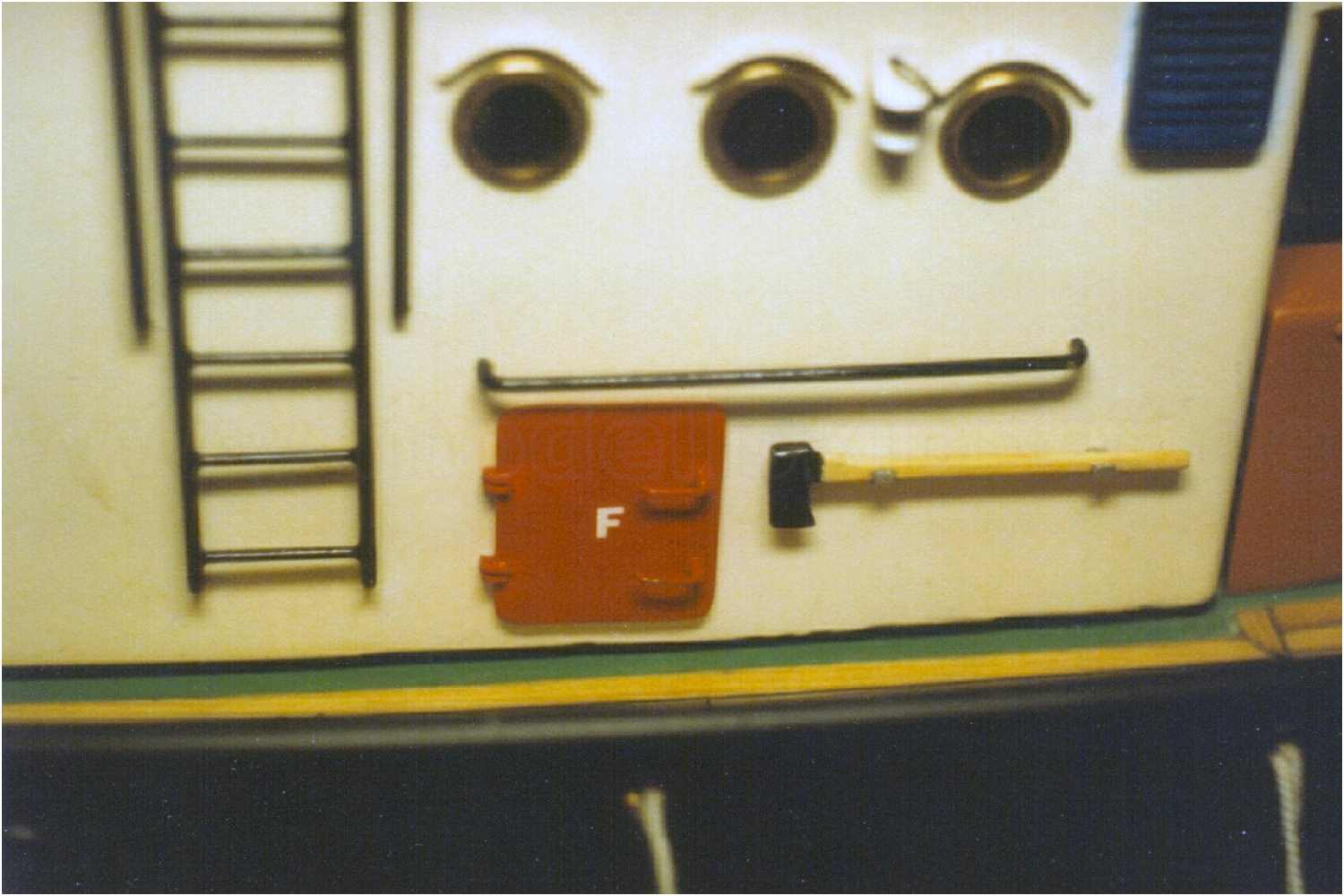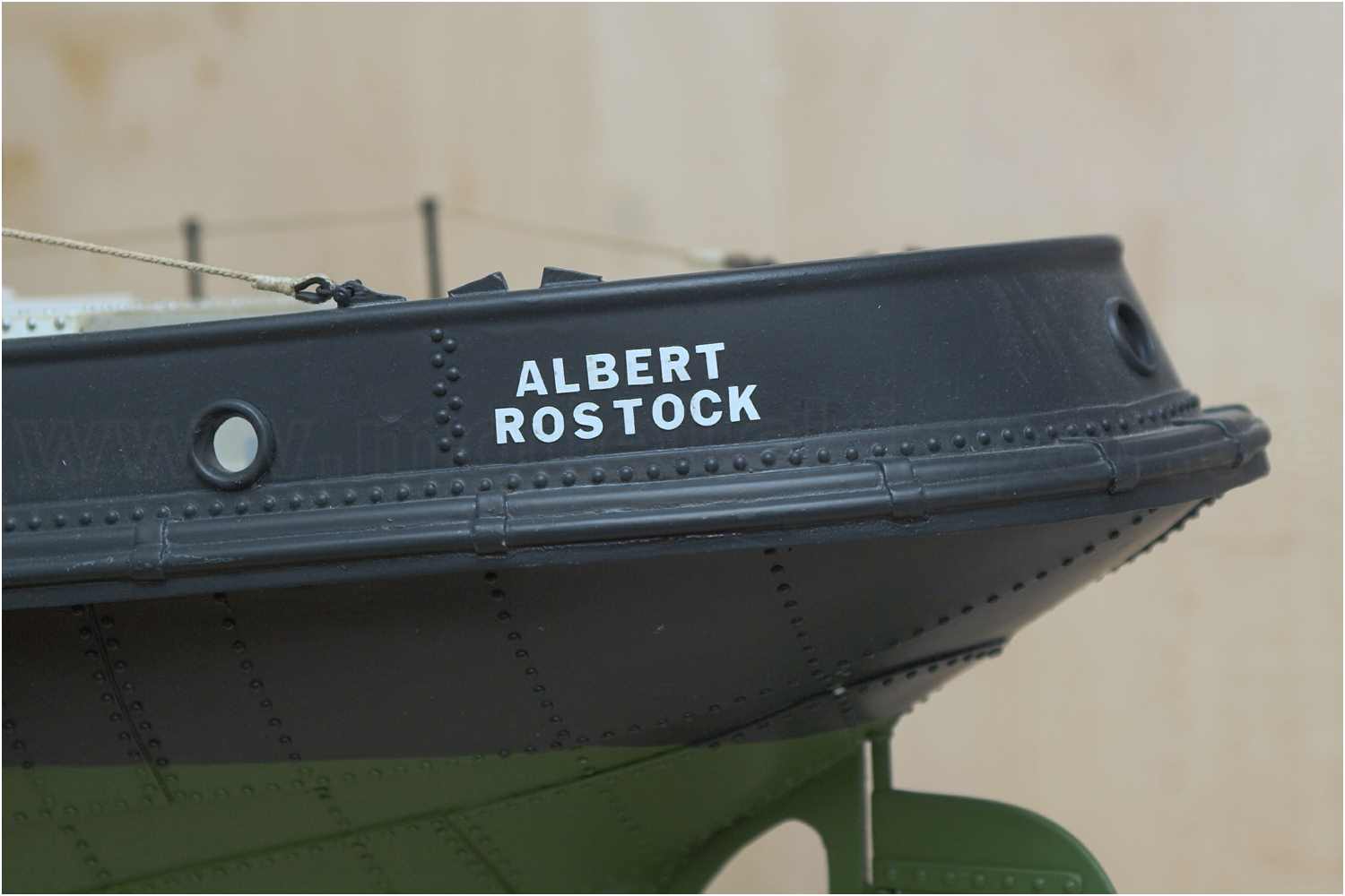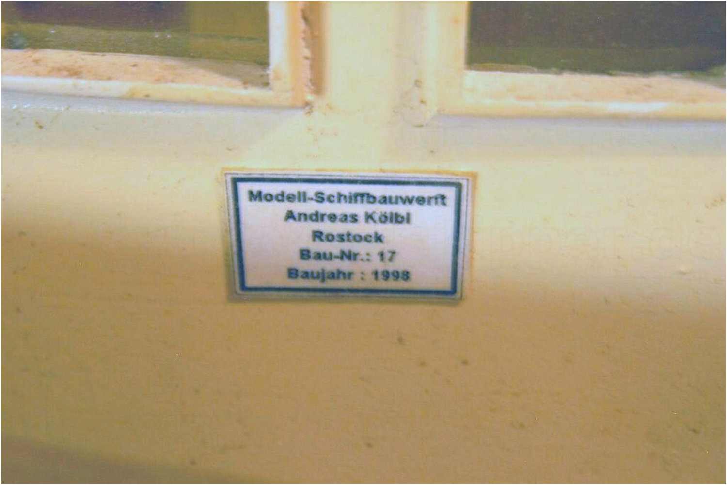 Schiffsname - ebenfalls aus einem Klebebuchstabenset.