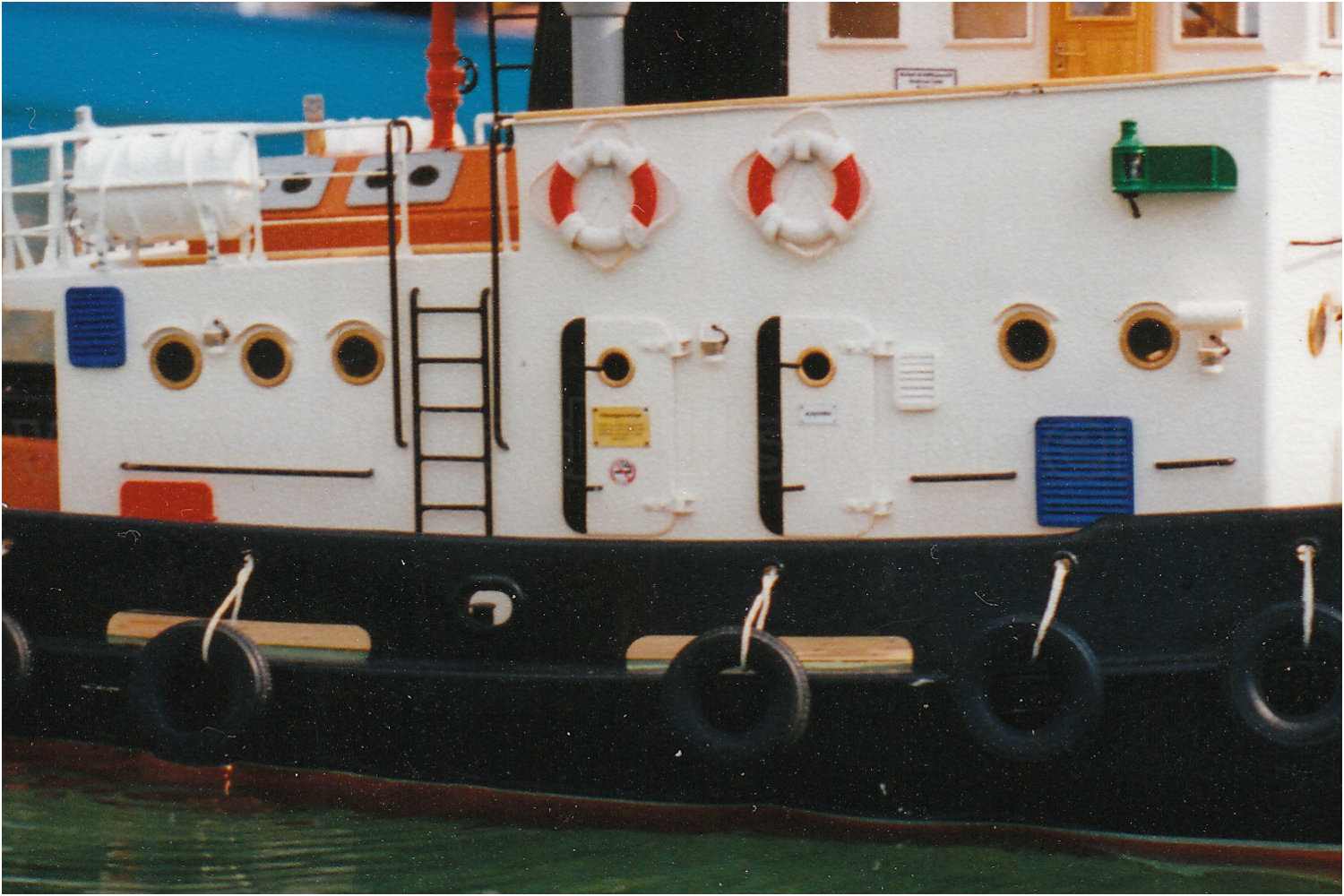 Sehr gern greife ich bei Schiffsnamen auf Klebebuchstaben zurück. Entweder ich lasse mir im nächsten Werbebüro einen entsprechenden Schriftzug anfertigen oder nutze Klebealphabete, die ebenfalls dort zu erhalten sind.