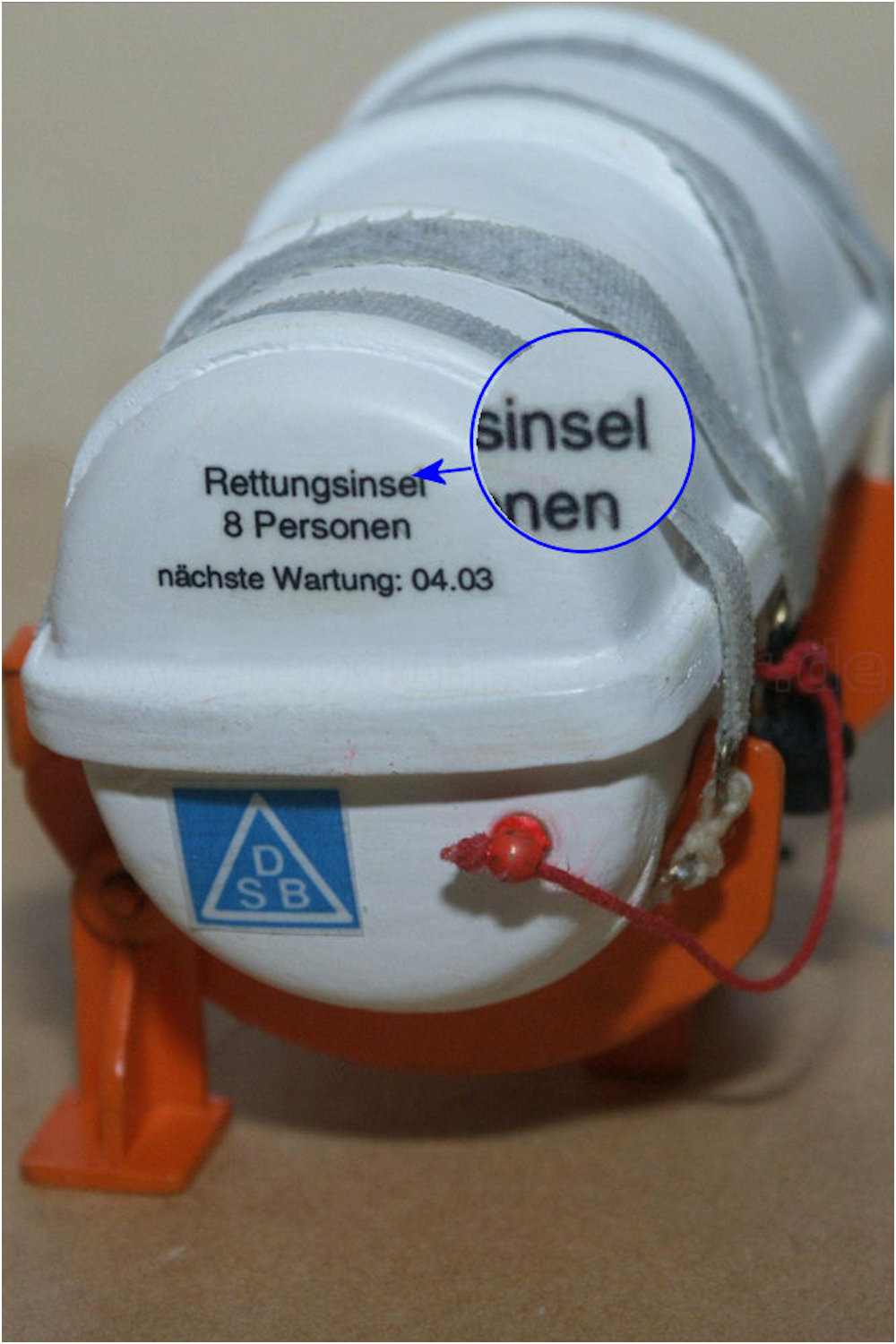 Beschriftung einer Rettungsinsel.