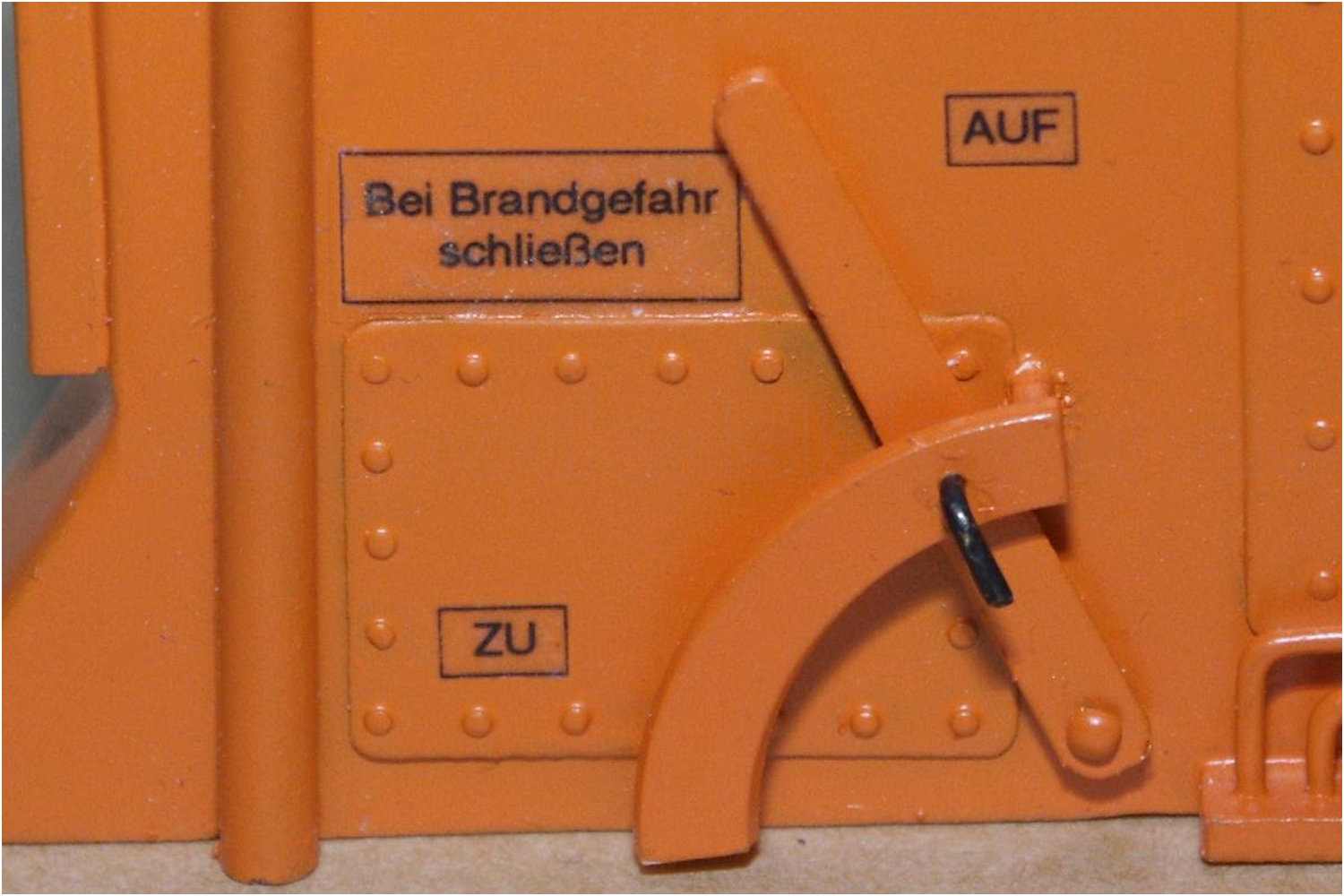 Leider etwas undeutlich da keine Digitalaufnahme - Hinweis- und Warnschilder an Türen. Hier allerdings kurz nach der ''Werftauslieferung''. Nach einiger Zeit das oben angesprochene Problem: die Farbe war ausgeblichen.