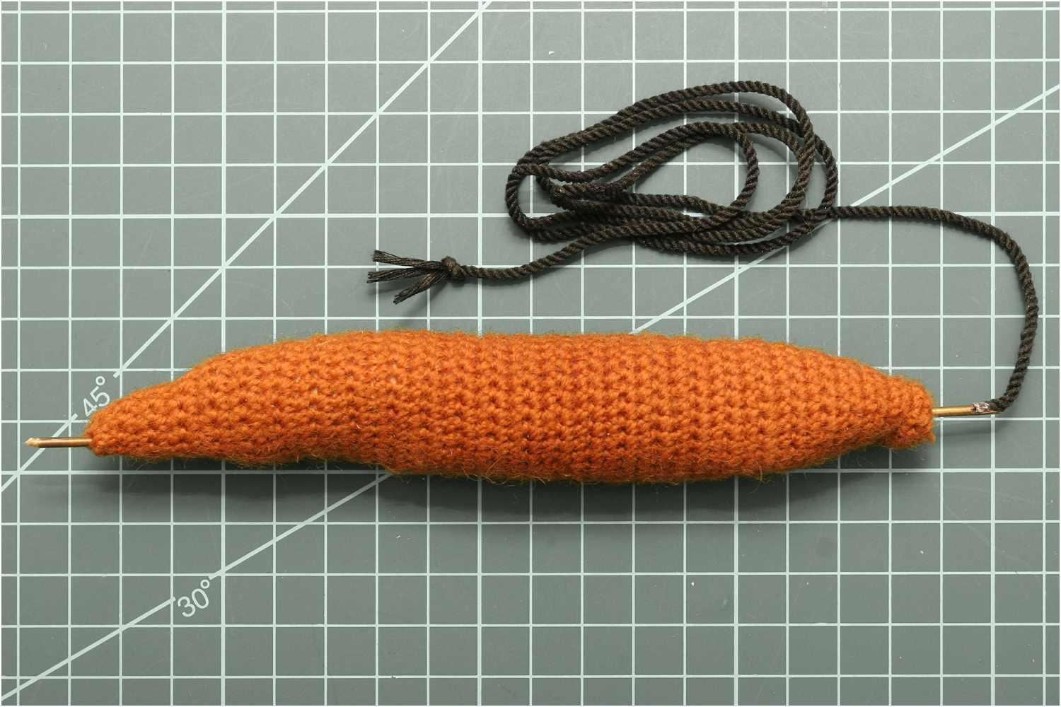 Die Strickbändselreste eignen sich nicht für eine spätere Befestigung am Modell. Diese wurden entfernt und die Stellen mit Sekundenkleber fixiert, um ein Aufdröseln zu vermeiden.
