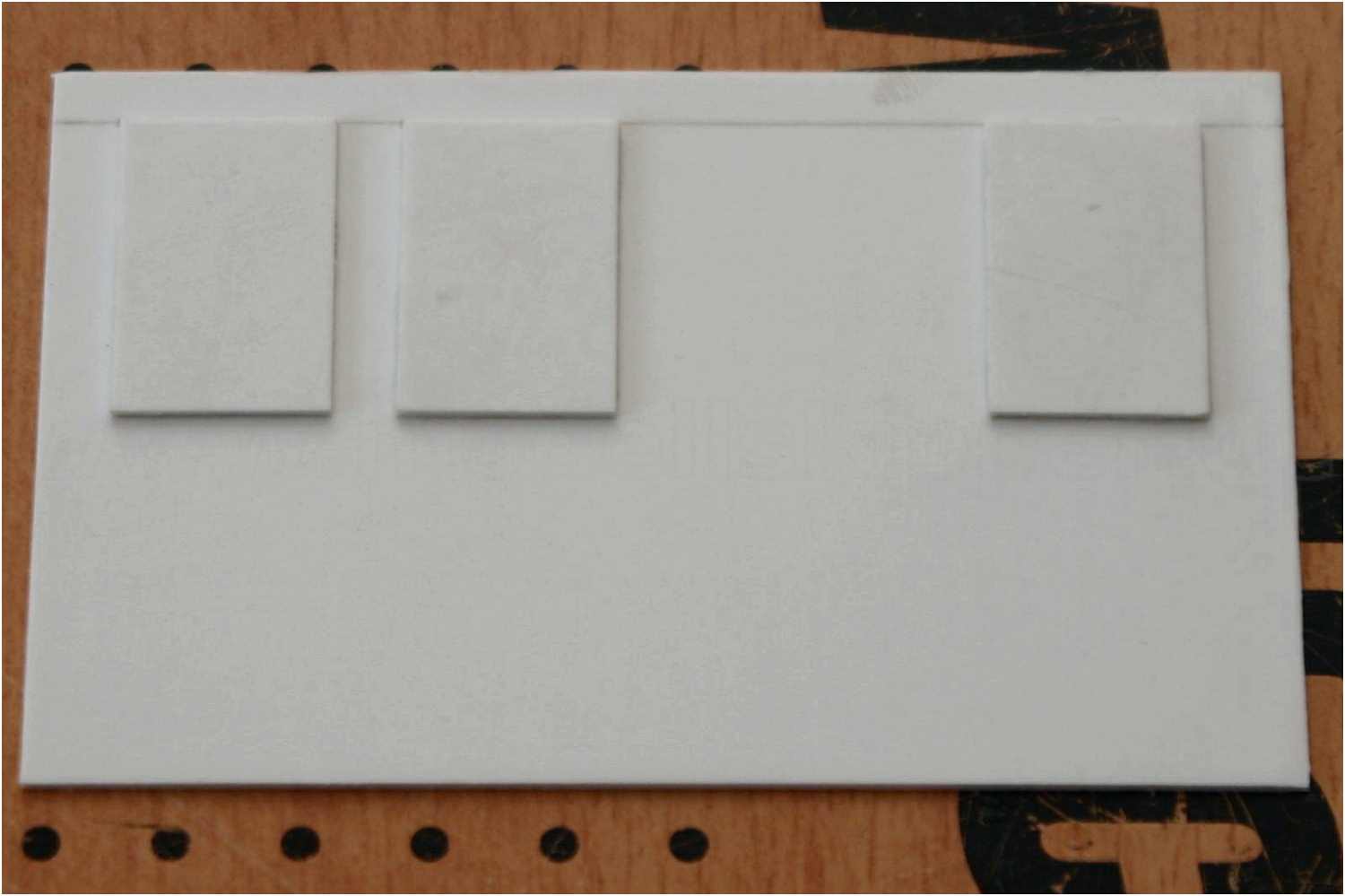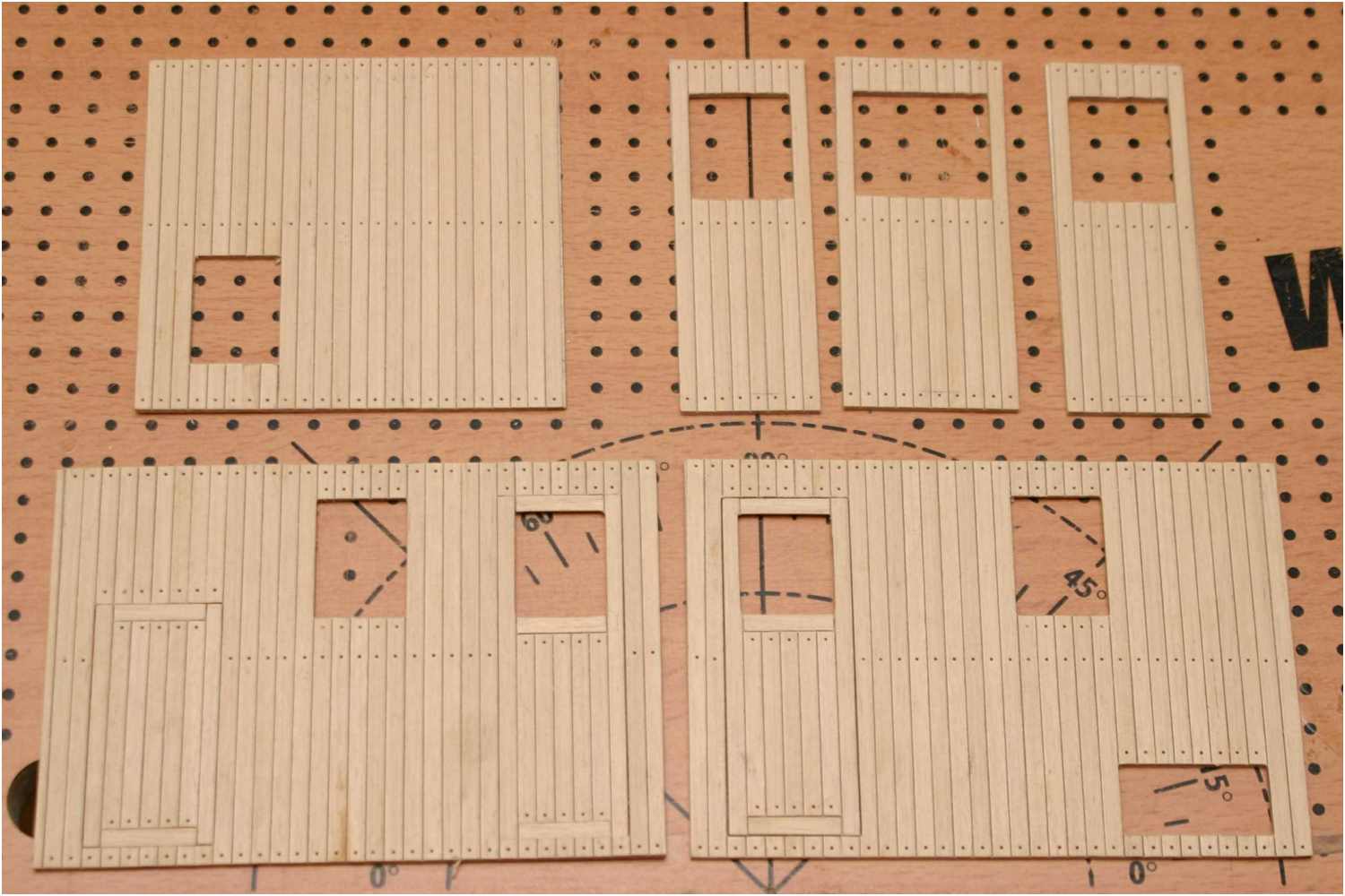 Um die Fensterrahmen darzustellen habe ich aus Reststücken kleine Platten zugeschnitten und auf die Position der Fenster geklebt.
