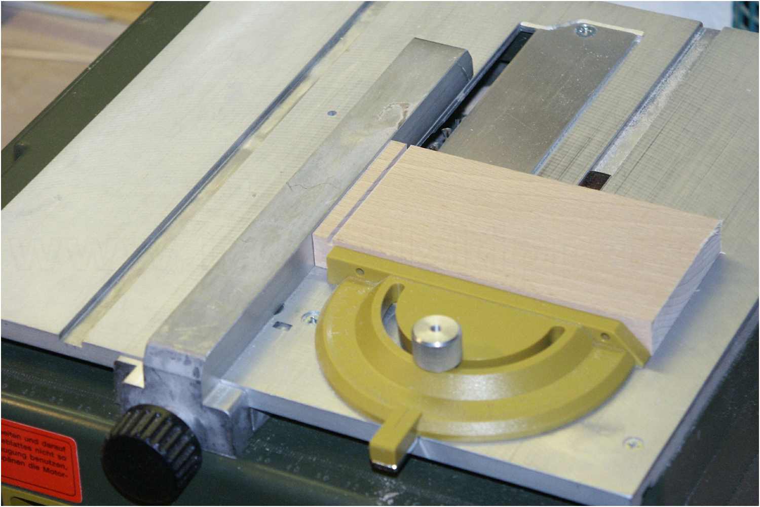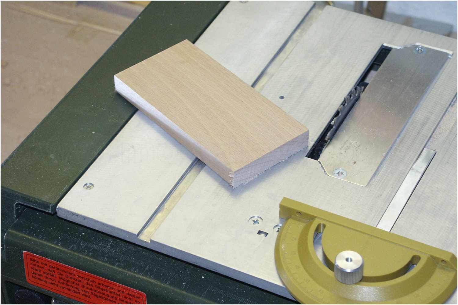 Anfangs schrieb ich, dass der Holzklotz mit etwas Überlänge zugeschnitten werden soll. Ganz einfach aus Sicherheitsgründen, damit die Finger nicht aus Versehen in das Sägeblatt geraten.