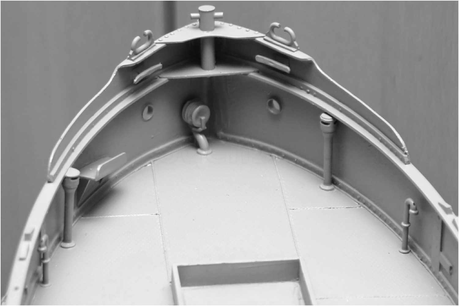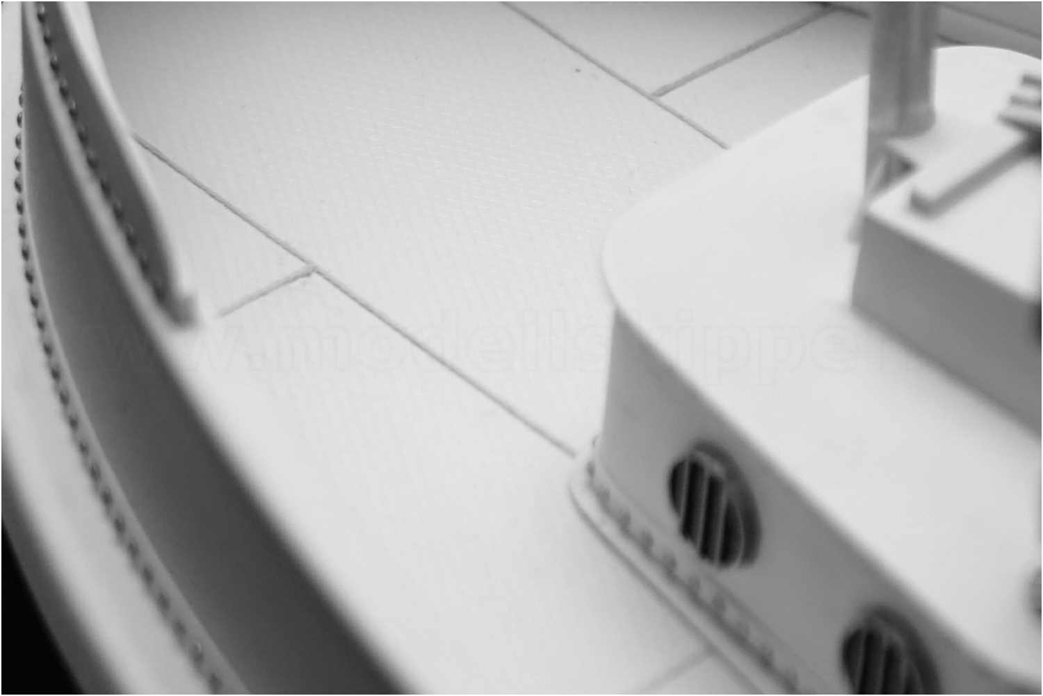 Beim Original besteht das Deck natürlich nicht aus einer kompletten Platte, sondern ist aus einzelnen Platten zusammengesetzt und verschweißt. Noch nie hatte ich so etwas an einem Modell realisiert.