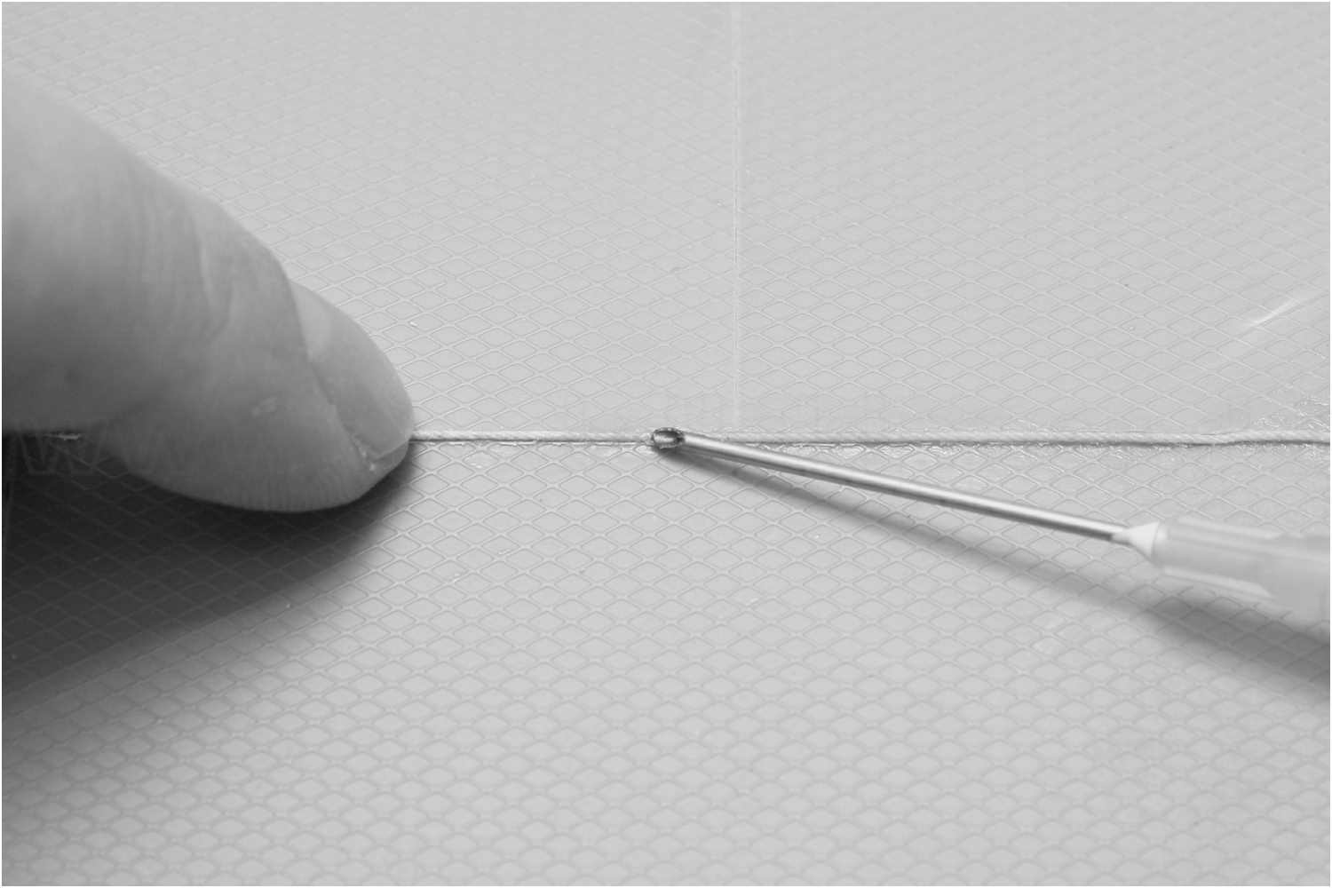 Nach mehreren Trockenversuchen, mit unterschiedlichen Methoden, wie z.B. dünner Spulendraht, Angelsehne oder das Überlackieren zweier mit minimalem Abstand nebeneinander aufgeklebter Tesafilmstreifen, entschied ich mich für die ''Zwirnsfadenmethode''. Draht erwies sich bei der Verarbeitung zu unflexibel, Knicke im Draht musste erst wieder gerichtet werden und ergab, genau wie Angelsehne, ein zu glattes Erscheinungsbild. Die Tesafilmvariante war mir zu aufwendig. Der Zwirnsfaden dagegen behielt seine unebene Oberfläche und kommt recht nahe an das Aussehen einer richtigen Schweißnaht heran.