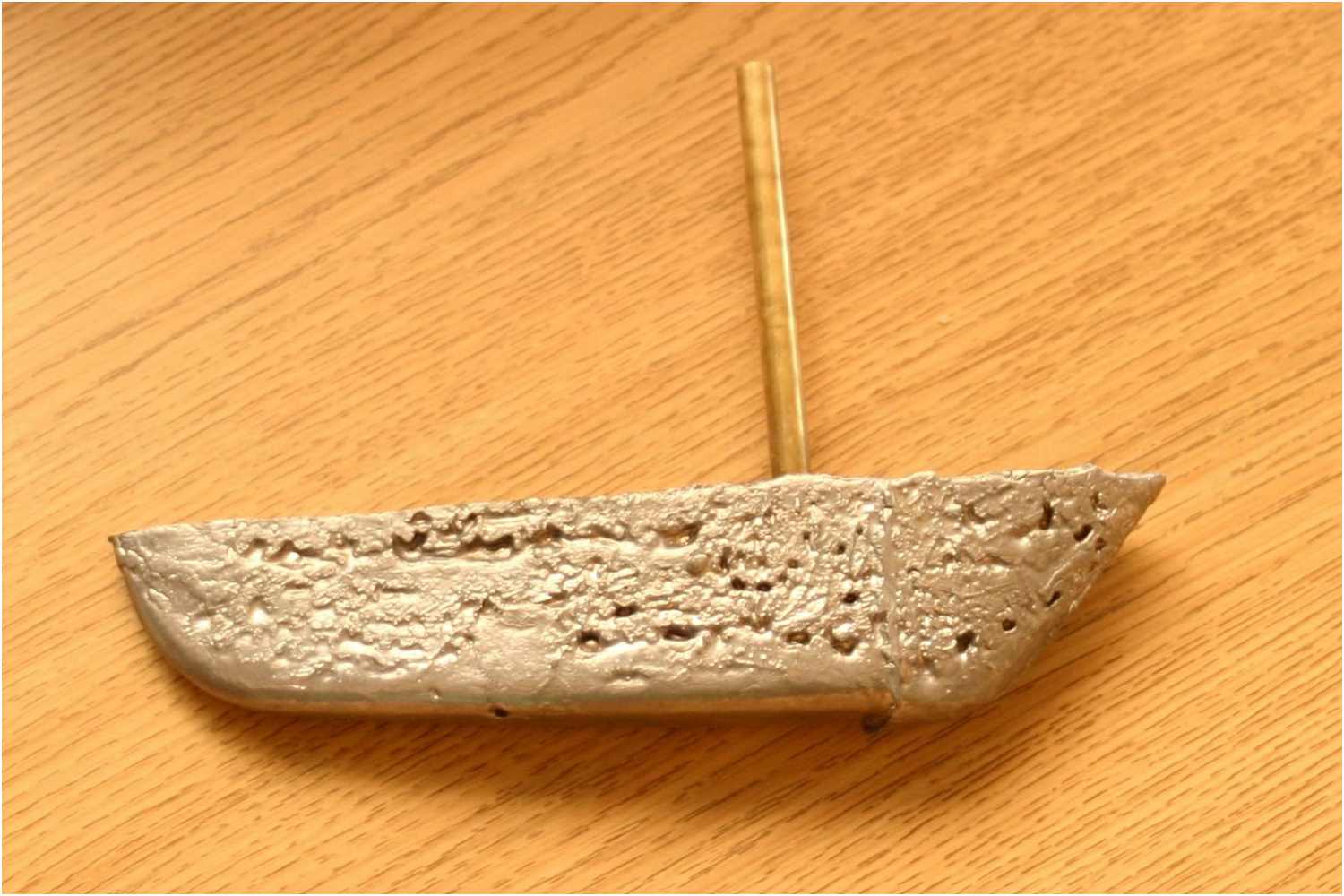 Hier am Beispiel einer Collie hatte ich einen Originalkiel Kiel zur Verfügung. So kannte ich das genaue Gewicht und konnte mir davon ein Duplikat aus Blei herstellen.