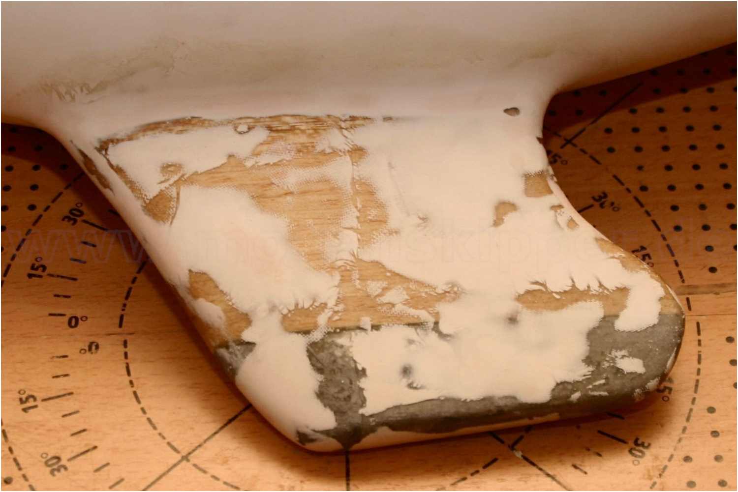 Die komplette Kiel wurde anschließend mit Glasmatte laminiert, verspachtelt und sauber verschliffen.