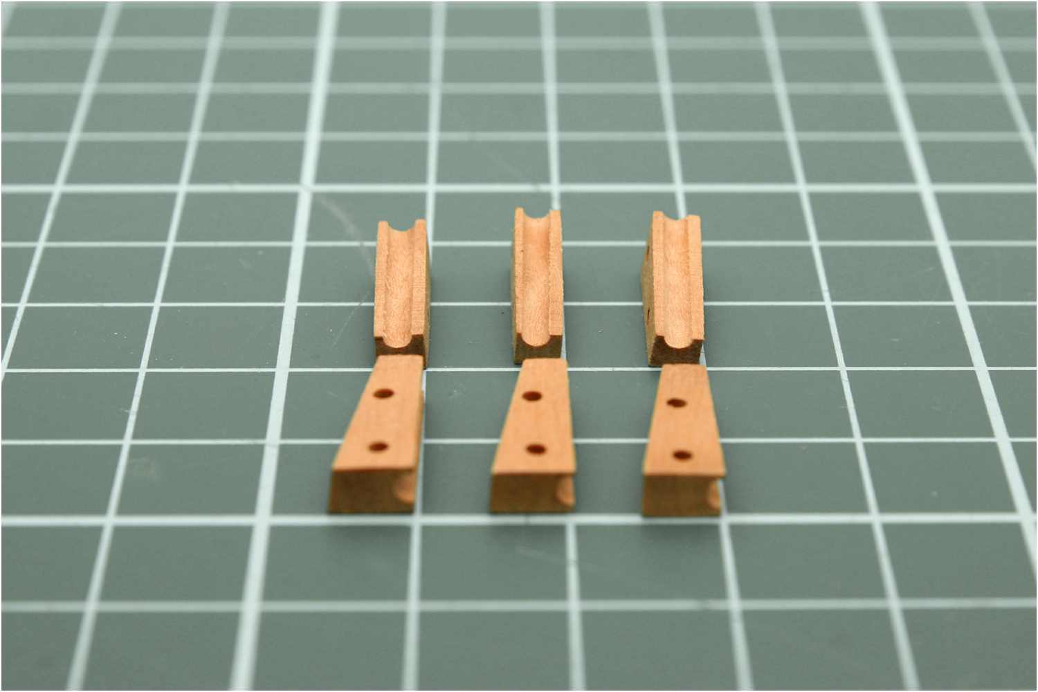 Diese Hölzer sind mit Löchern versehen. Der Lampenbord kann so einfach an die Wanten angebändselt werden.