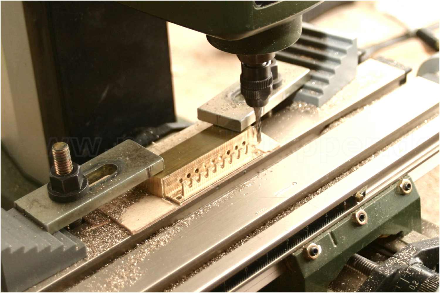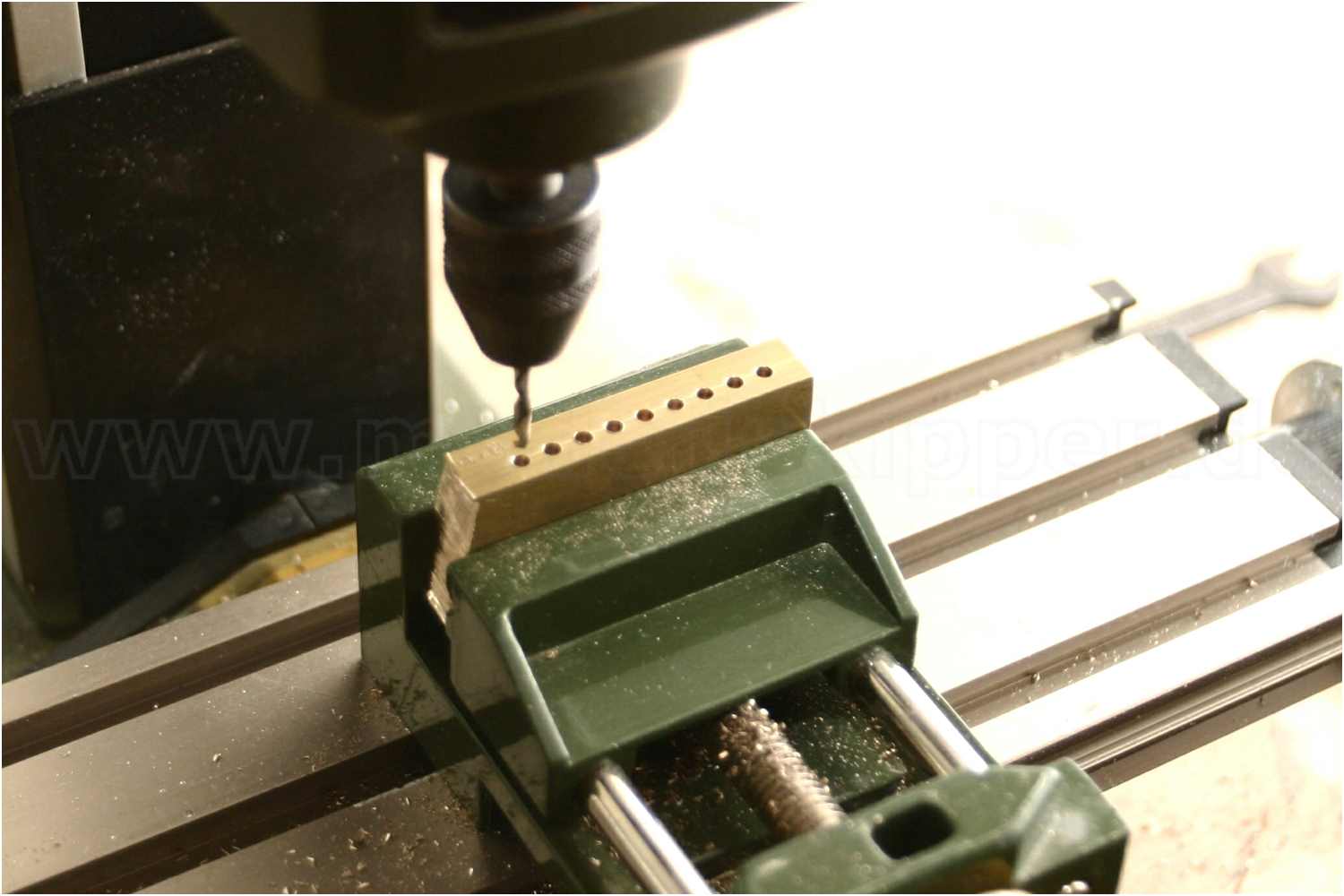 Vorbohren und Fräsen der T-Profile aus einem Messingblock.