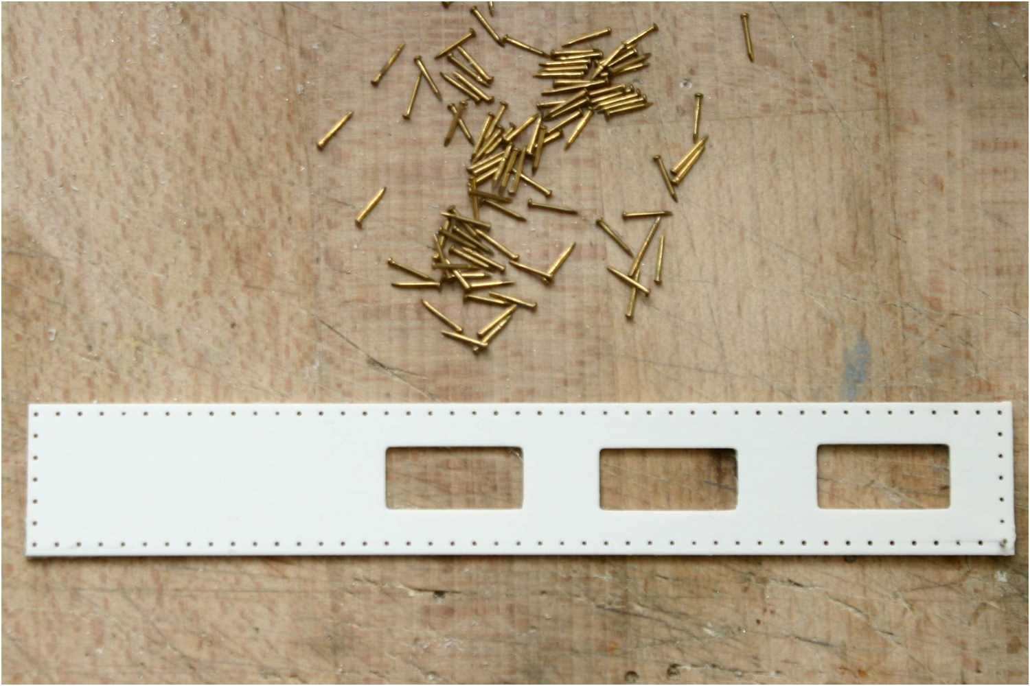 So perfekt wie auf dem vorhergehenden Bild wollen wir gar nicht sein. Ich habe mich auf eine Größe von 0,5 mm für einen Maßstab von 1:35 festgelegt und dabei aber auch auf Messingnägel zurückgegriffen.