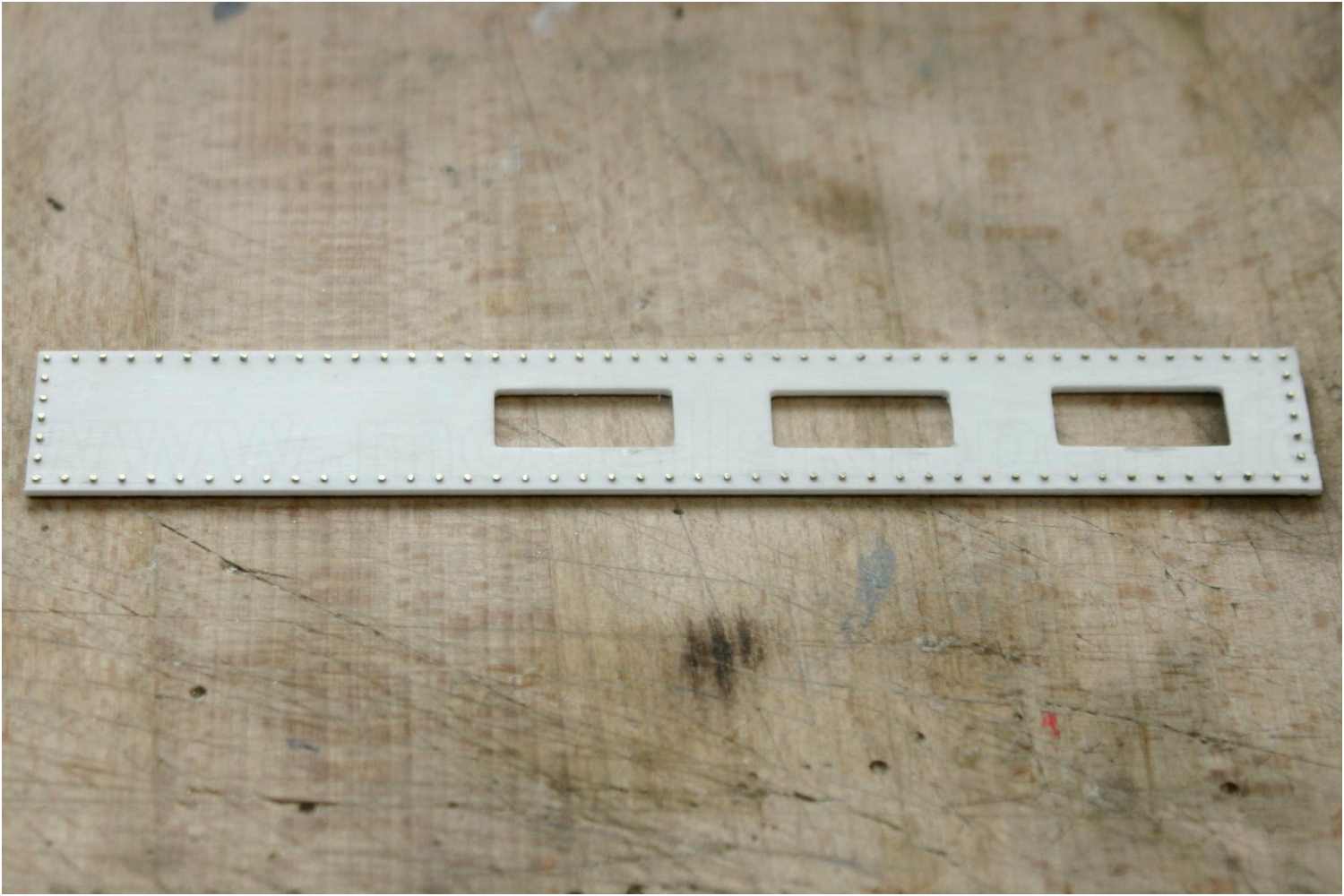 Es gibt Modellbauer, die die Imitation solcher Niete perfektioniert haben, wie auf einem der nächsten Bilder zu erkennen ist. Diese Möglichkeit bleibt mir aber verwehrt, da ich hierzu ein spezielles Stanzwerkzeug herstellen müsste, was aber jenseits meiner Möglichkeiten liegt.