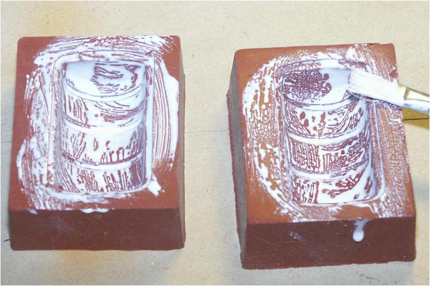 Während für die Herstellung der Form sehr dünnflüssiges Silikon verwendet wurde und bis zum Aushärten in einer Schale verbleiben muss, gibt es noch eine Variante mit Knetsilikon, das zum Abformen für kleine Details genutzt werden kann.