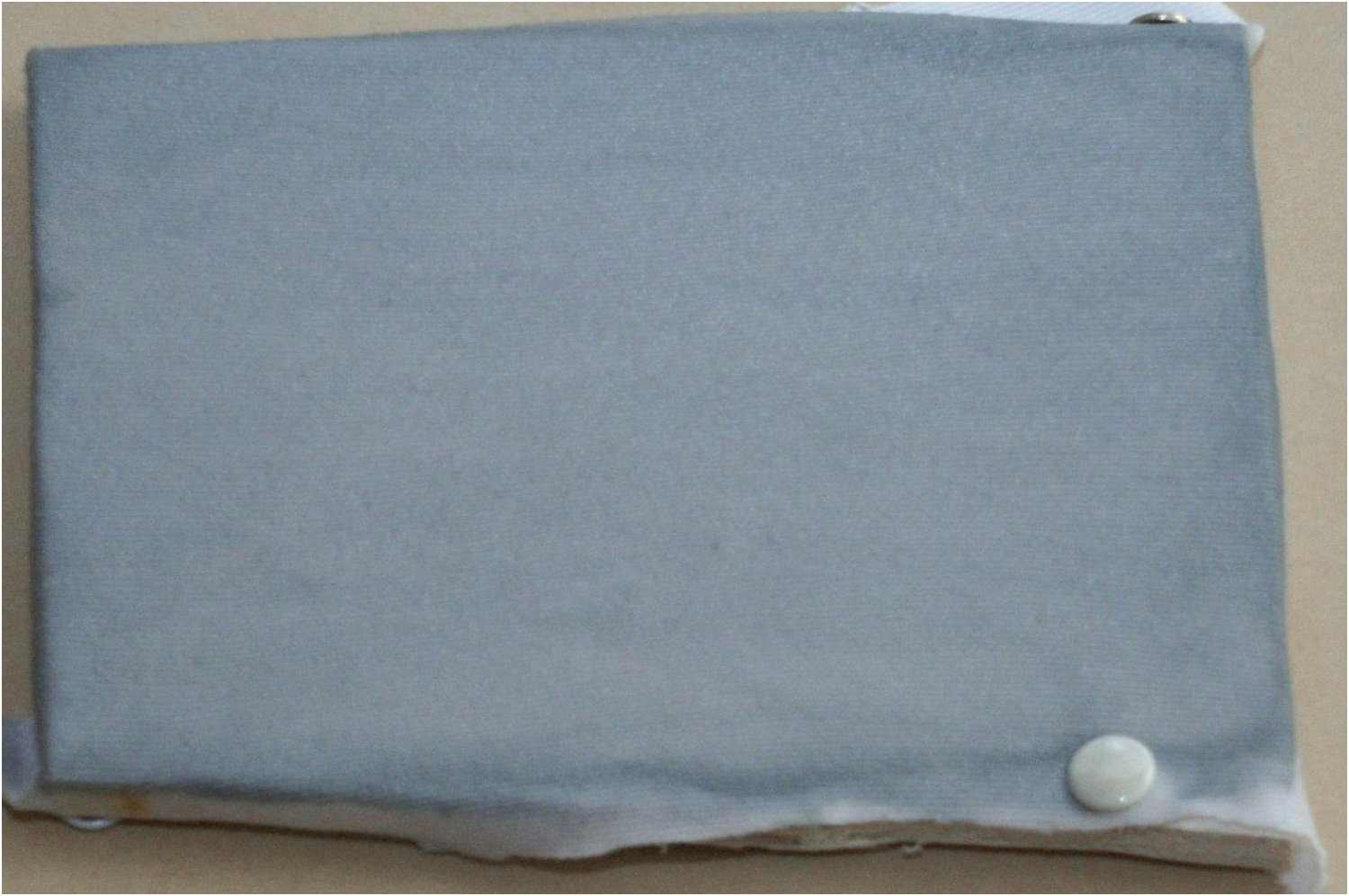 Für die Fertigung der Haltegurte habe ich ein Rest Baumwollstoff auf ein Stück Sperrholz befestigt und anschließend mit hoch verdünnter grauer Farbe getränkt, anschließend noch mit seidenmattem Klarlack fixiert. So kann der Stoff mit dem Klingenmesser in schmale Streifen geschnitten werden, ohne auszufransen.