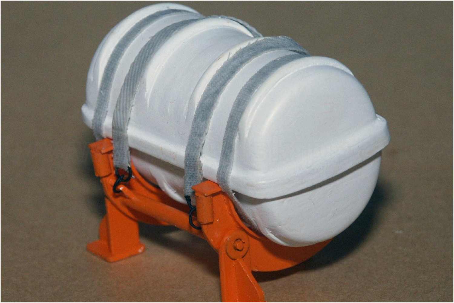 Um die Rettungsinsel herzustellen, nutzte ich die Hälfte eines Tanks von einem Revell-Truckmodell.