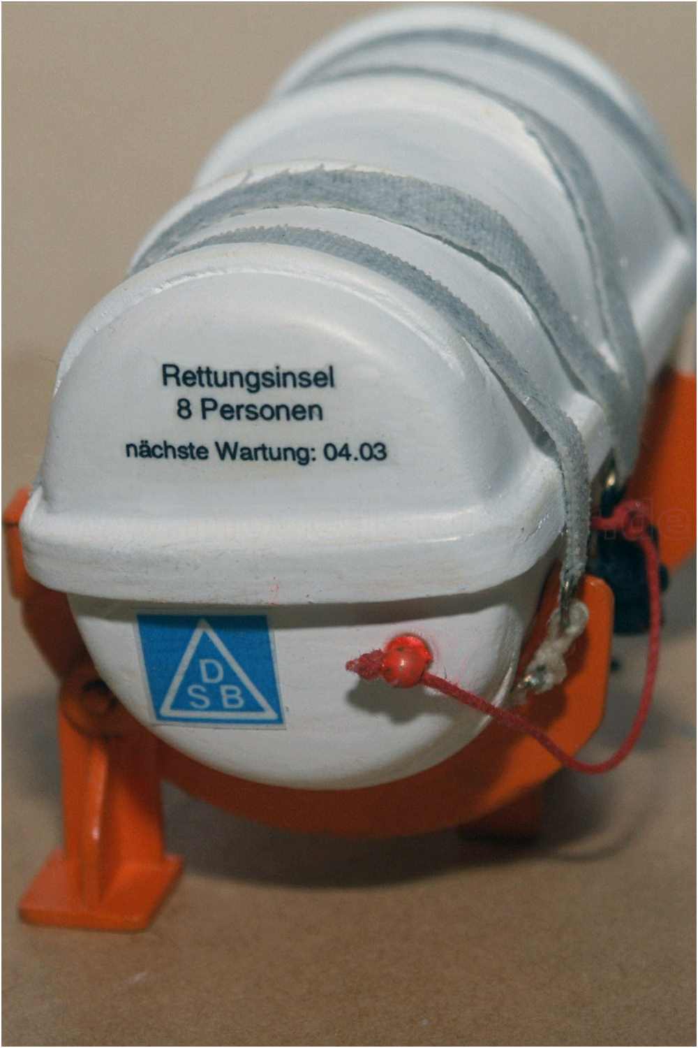 Die ''Sprengkapsel'' wurde ebenfalls imitiert, die dafür sorgt, dass sich bei einem möglichen Untergang des Schiffes die Rettungsinsel von den Haltegurten löst und aufschwimmt.