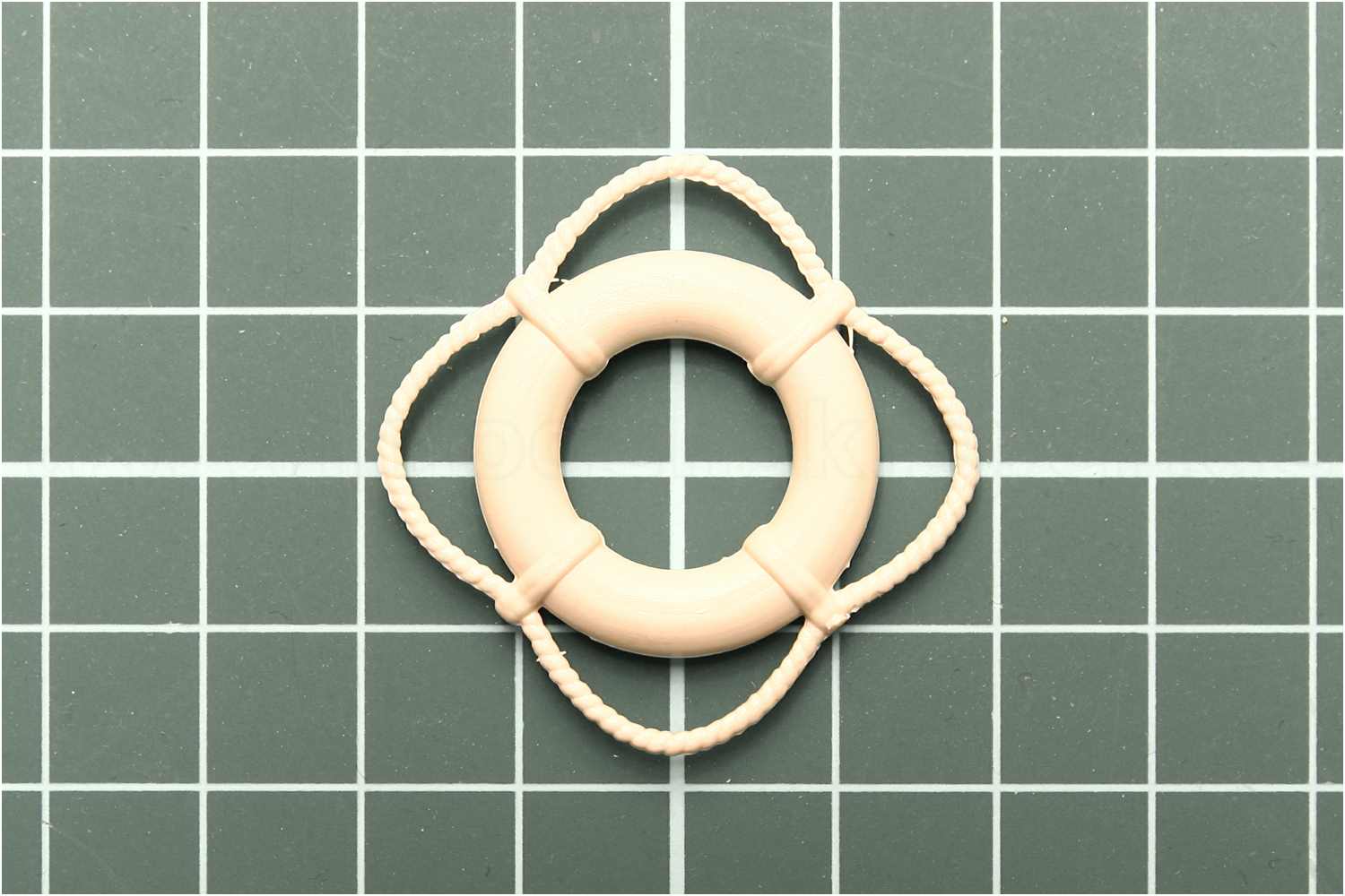 Solche Rettungsring-Imitationen gibt es in den verschiedensten Größen zu kaufen und man sieht sie oftmals unverändert auf vielen Modellen. Schon früher habe ich diese hässlichen Plastikbändsel immer abgeschnitten und "echtes Tauwerk" mit Heftpflaster angeklebt.