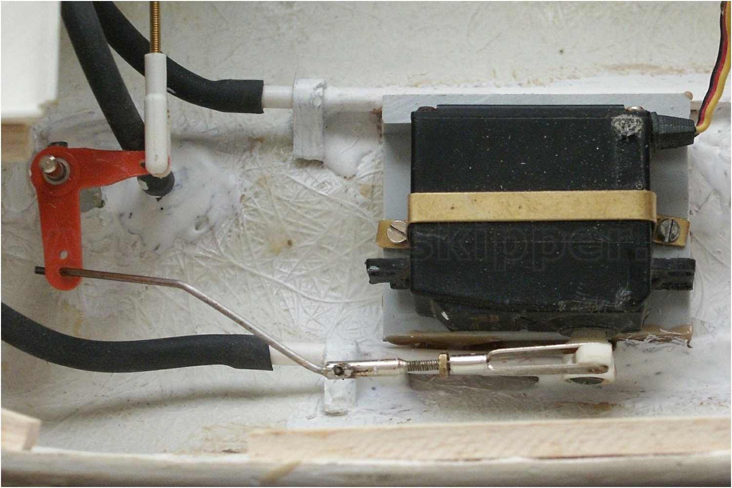 Die Befestigung mittels Messingschelle spart die Konstruktion eines ''komplizierten'' Servohalters und ist sehr wartungsfreundlich.