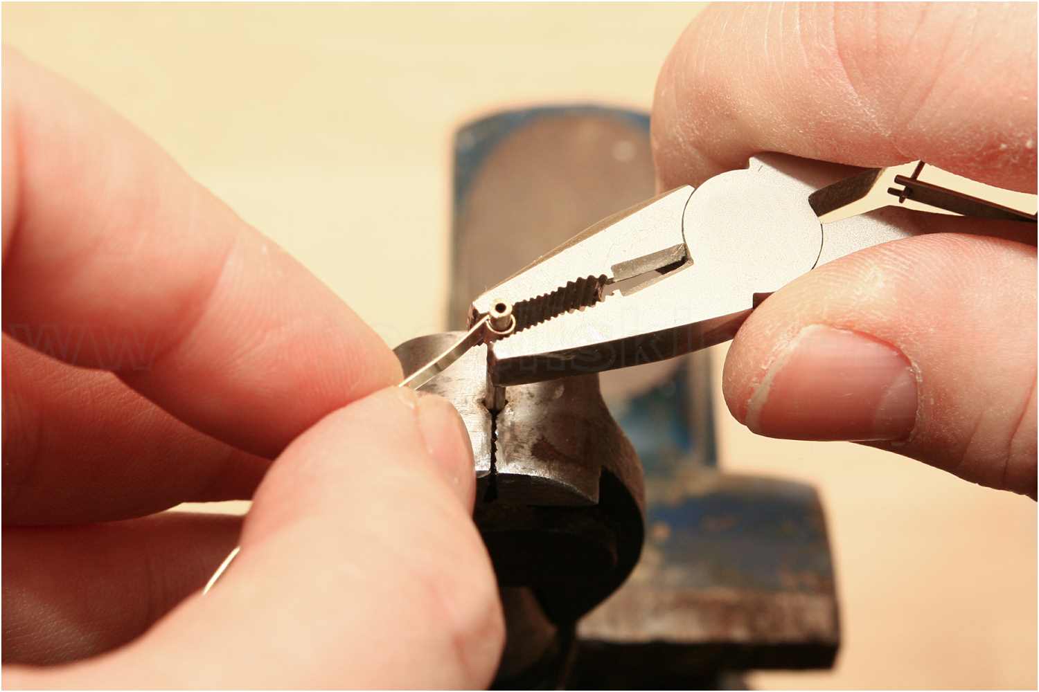 Um eine gleichmäßig geformte Öse zu erhalten, wird zuerst ein "U" gebogen.