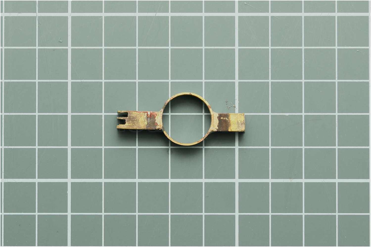 Dieses Beschlagteil, ähnlich einer Schelle, kann man nicht aus einem umgebogenen Messingstreifen herstellen, das wäre nicht stabil genug.