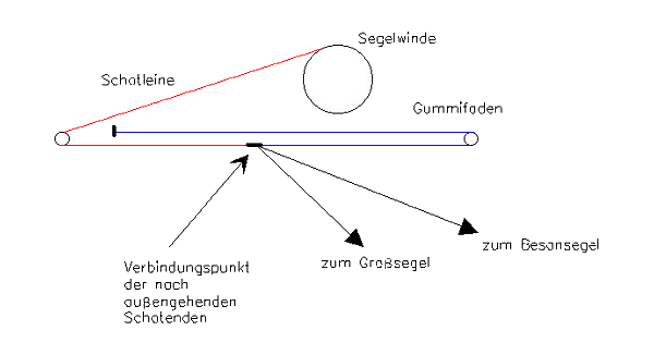 So kann die Spannung der Schotleine mit einem Gummifaden gelöst werden: