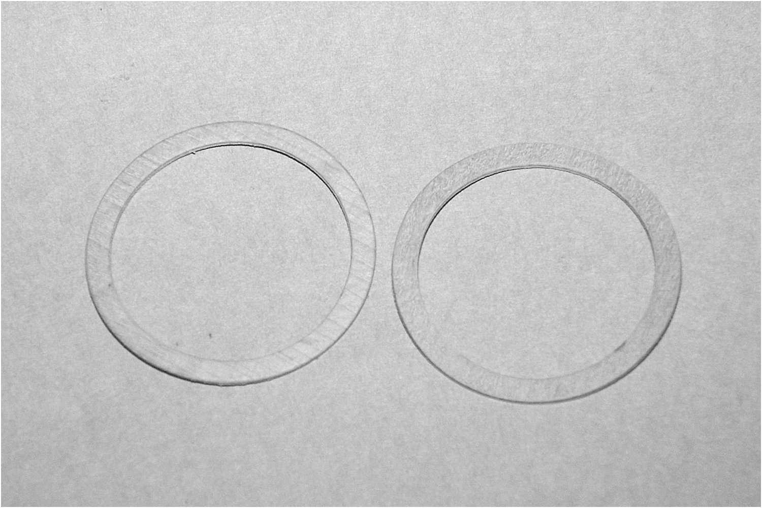 Zwei Holzringe, quasi der Rahmen, der die Speichen und Abstandshölzer des Steuerrades zusammen halten, habe ich aus Furnierholz gefertigt und auf das Steuerrad geklebt, die Abdeckplatte der Nabe wurde auf Messing gedreht.