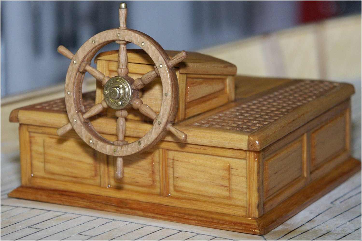 Das fertige Steuerrad und das dazugehörige Steuerhaus.