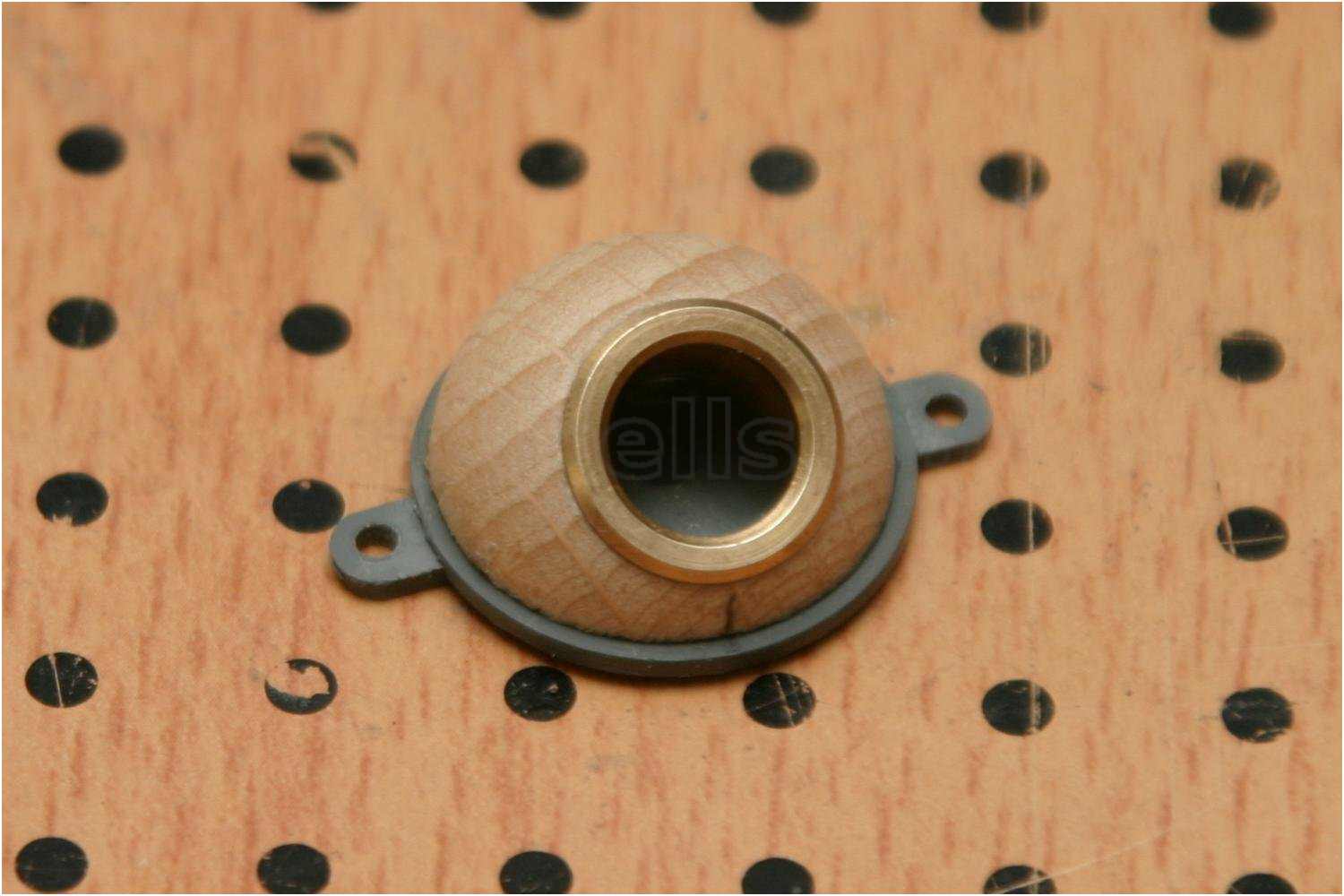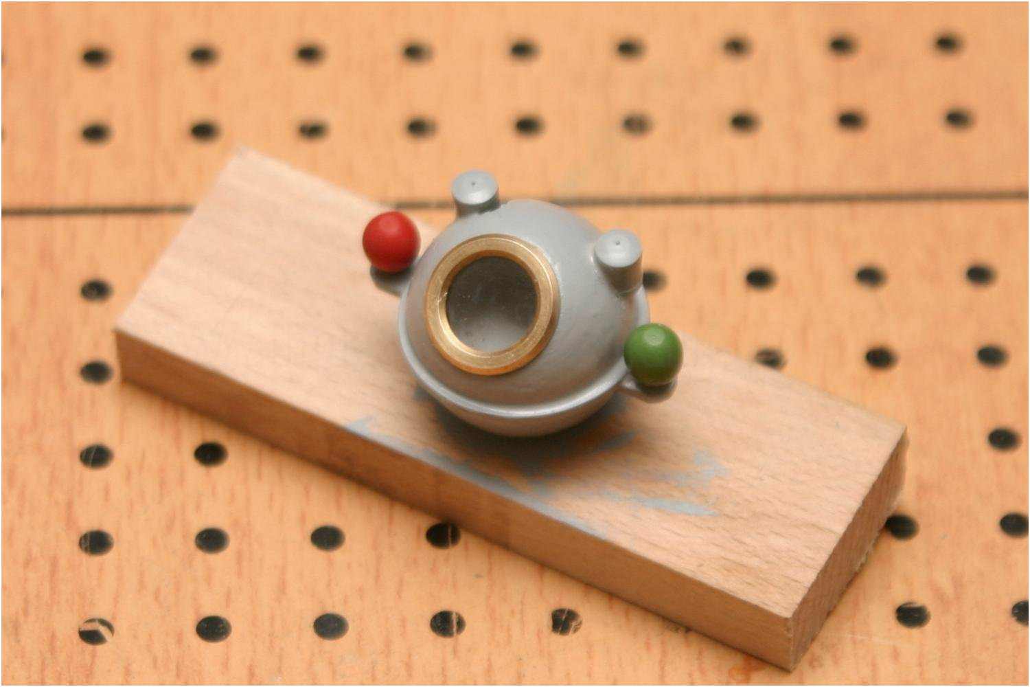 In eine zum Maßstab passende Holzkugel wurde das Sichtfensterchen aufgebohrt.