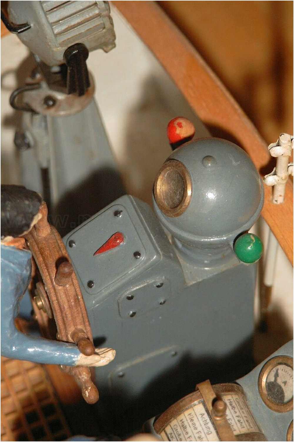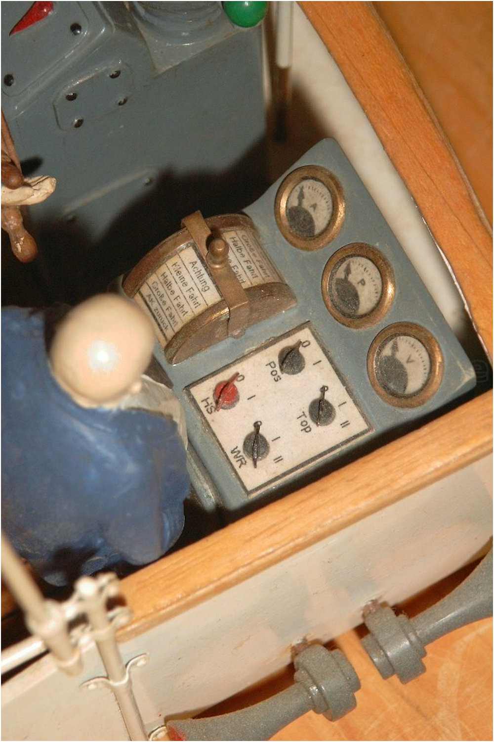Aber nein. Beschlagteile werden einfach angeklebt - oft zu beobachten bei Rettungsringen - Rettungsboote sind nicht verzurrt, Laternen und Lampen beziehen ihren Strom aus der Luft, Anker baumeln in der Klüse vor sich hin, Leinen werden nicht aufgeschossen oder einfach um ein Stück Holz gewickelt, Vorreiber und Riegel werden von einem Stück Messingdraht einfach abgekniffen und nicht mal plangeschliffen, Luken haben keine Scharniere und das Radarsignal wird sozusagen ''wireless'' auf die Brücke gesendet. Aufbauten sind blitzeblank, sprich einfach nackig - keine Schalter, keine Steckdose und keine Zuleitung ''stören'' das triste Dasein.