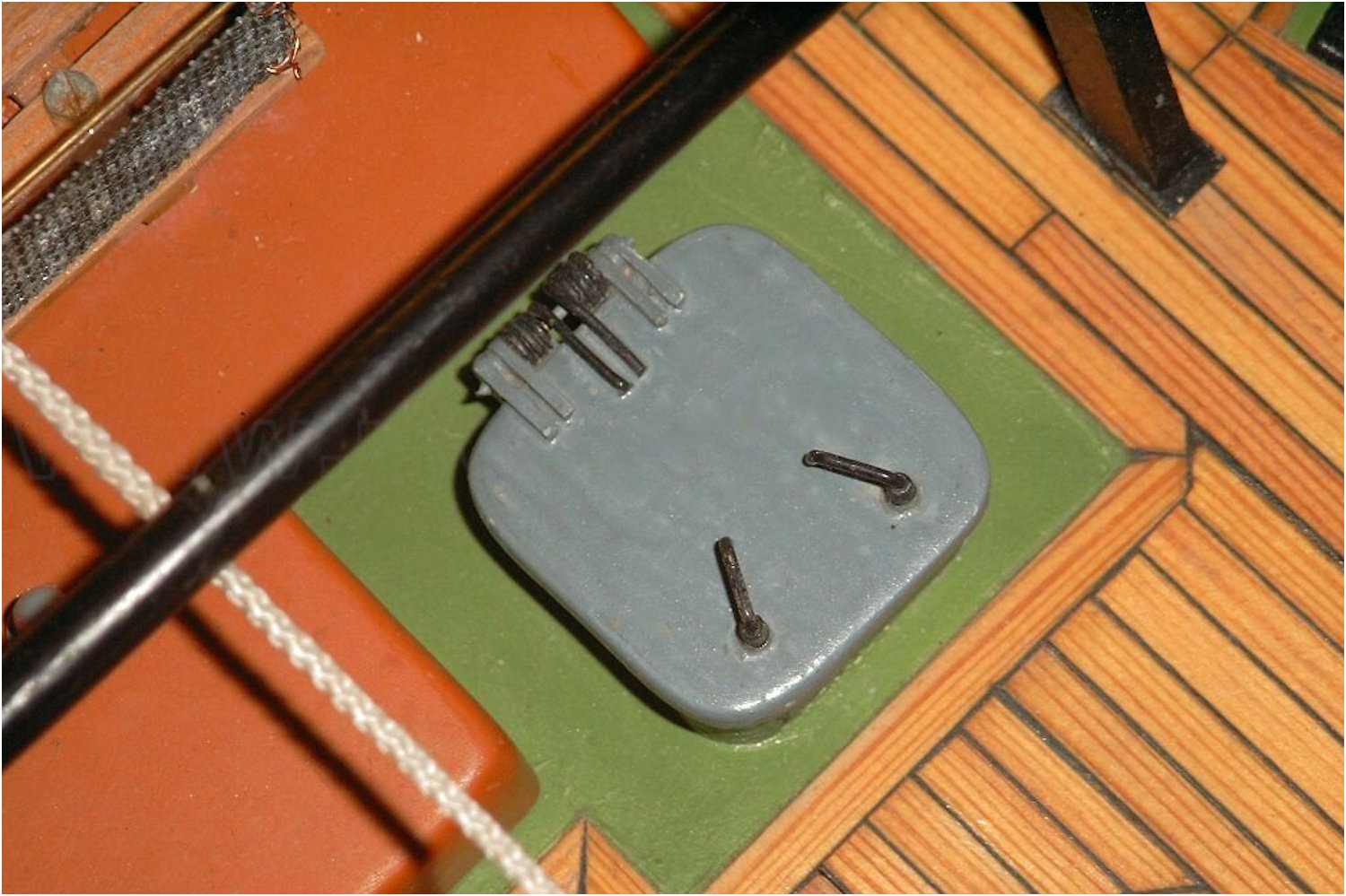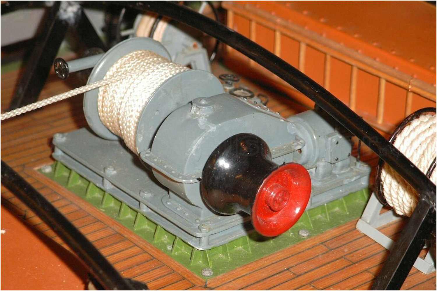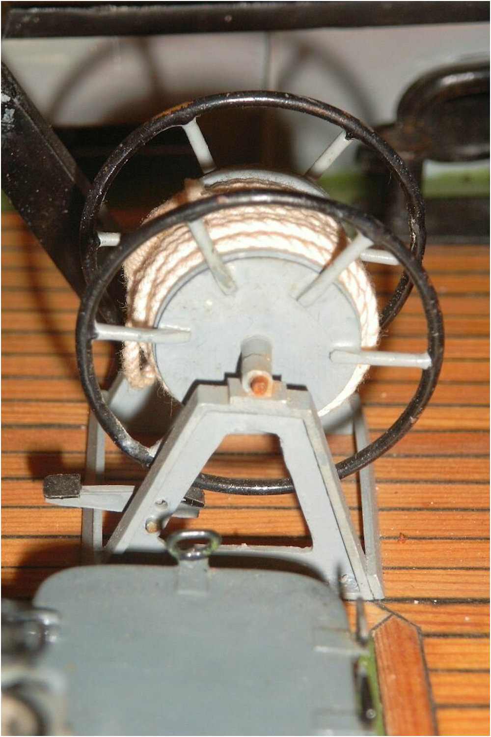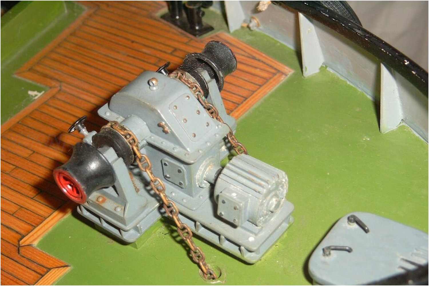 Auch die Muttern, die die Winde auf dem Fundament halten, erhöhen die plastische Darstellung, wobei sie eigentlich für den Maßstab viel zu groß sind.
