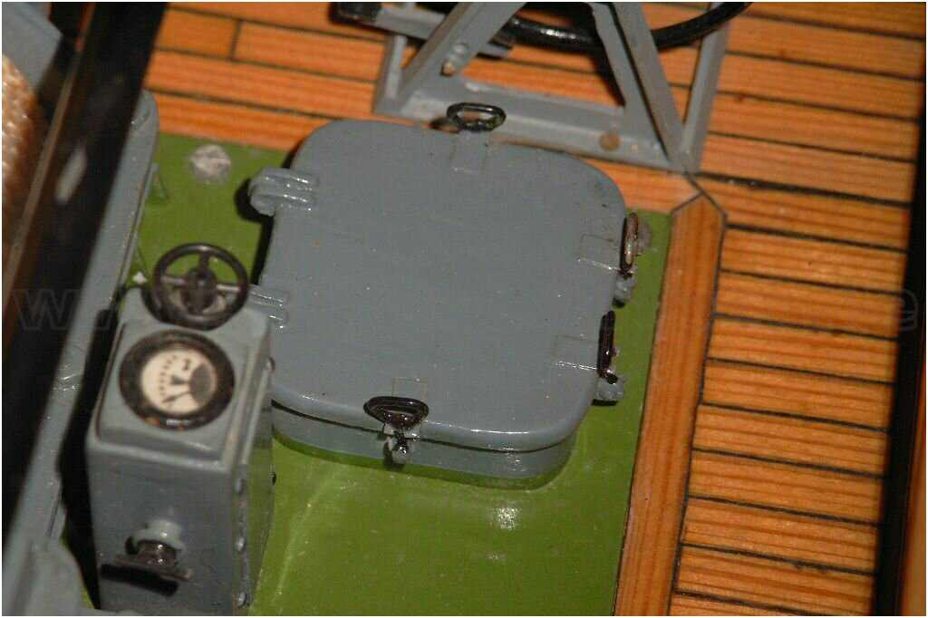 Der Lukendeckel ist, wie auch die vielen anderen Details an diesem Modell, aus ABS und wurde ''zurecht'' gefeilt und nicht etwa tiefgezogen, wie man vermuten könnte.