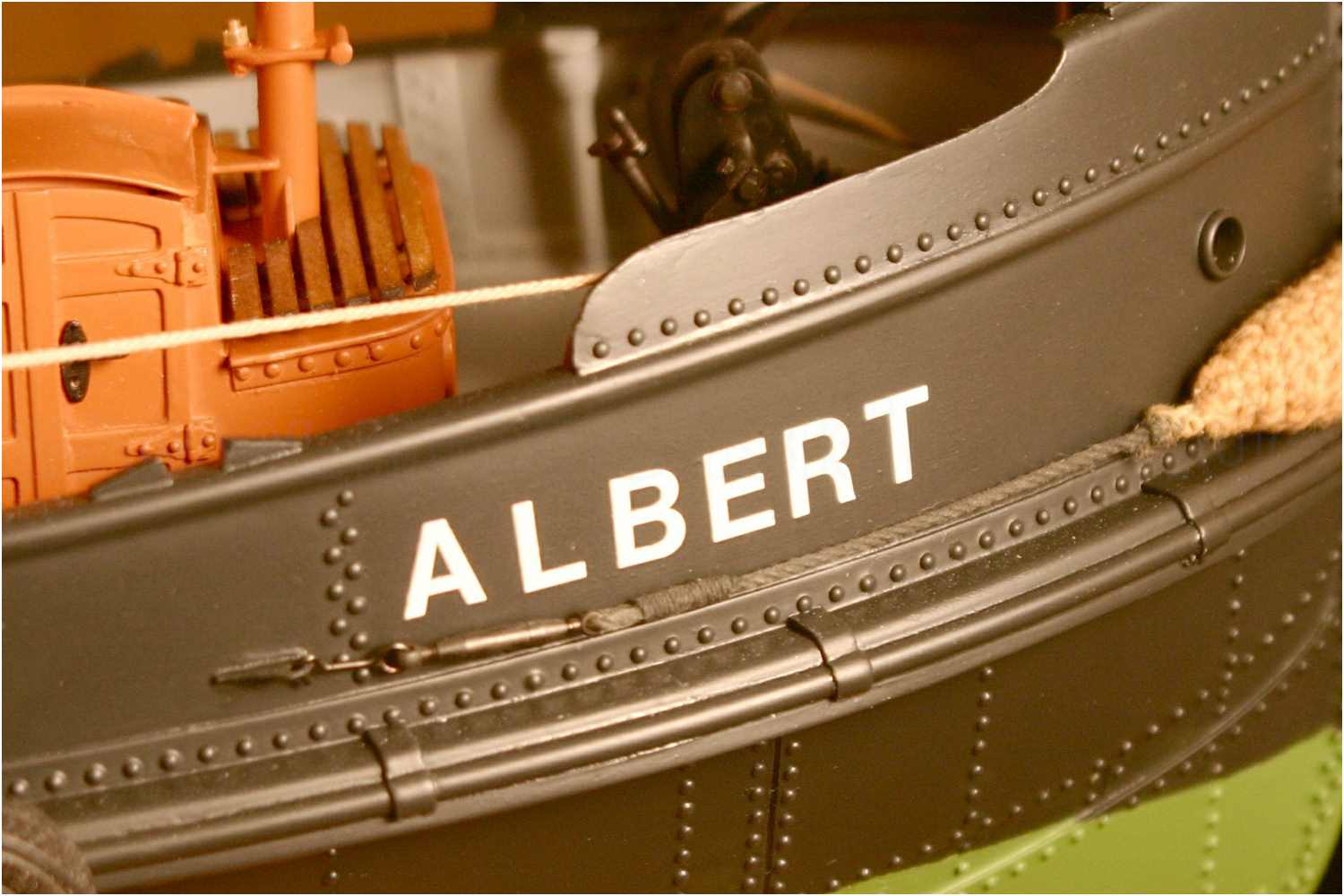 ''Detailreichtum'' in Hülle und Fülle auf kleinstem Raum ohne überladen zu wirken. Niete an einem alten Dampfschlepper sind beinahe Pflicht.