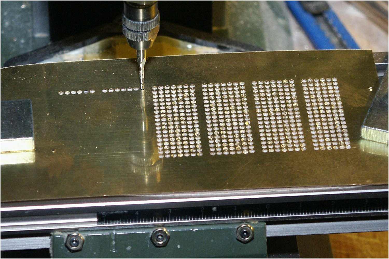 Allerdings muss dazu vorgebohrt werden. Um eine saubere Bohrreihe hinzubekommen, ist einen Koordinatentisch fast unerlässlich.