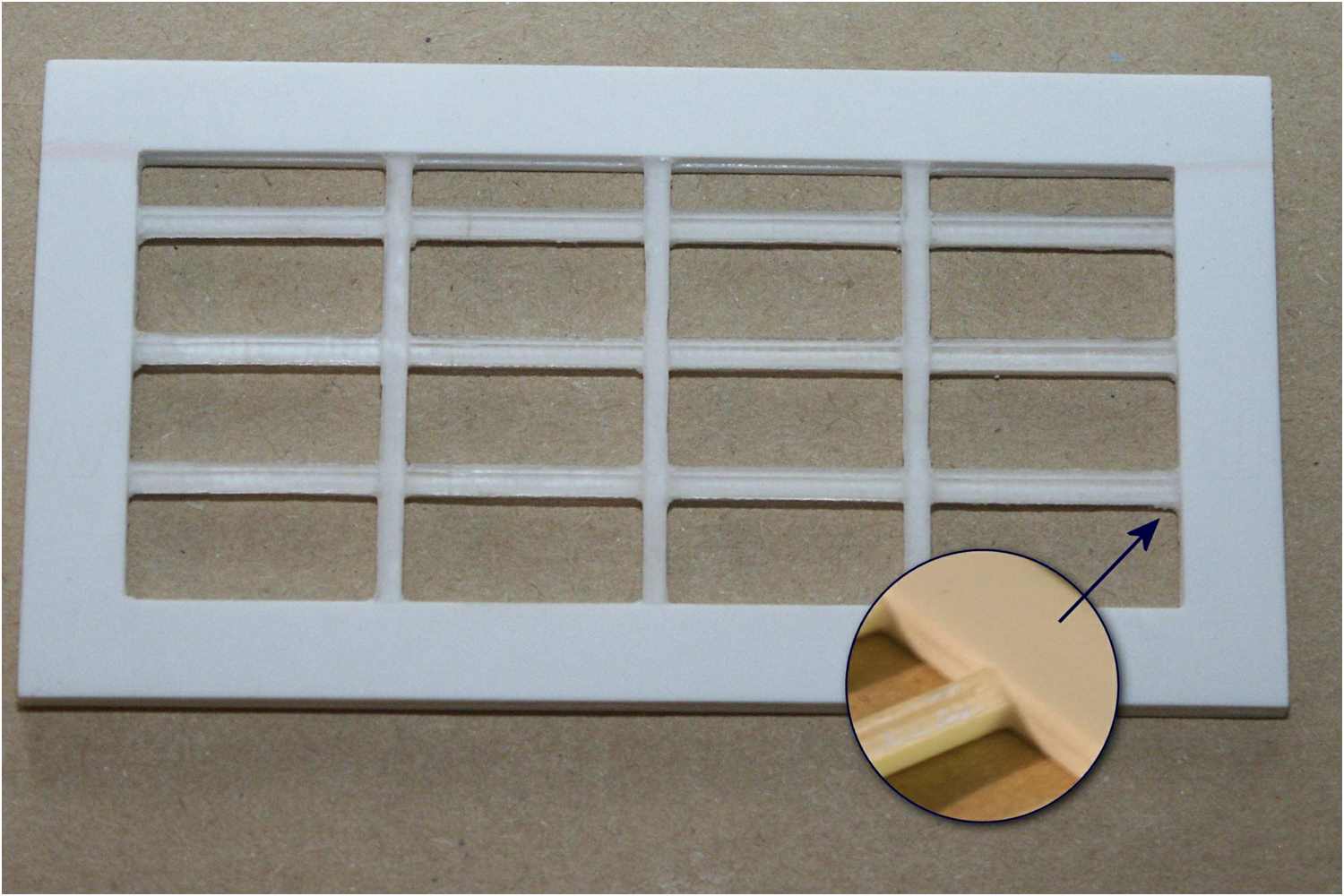 Hier wurden Sie mit einem 45°-Senkkopffräser aus einer Plexiglasplatte ausgefräst.