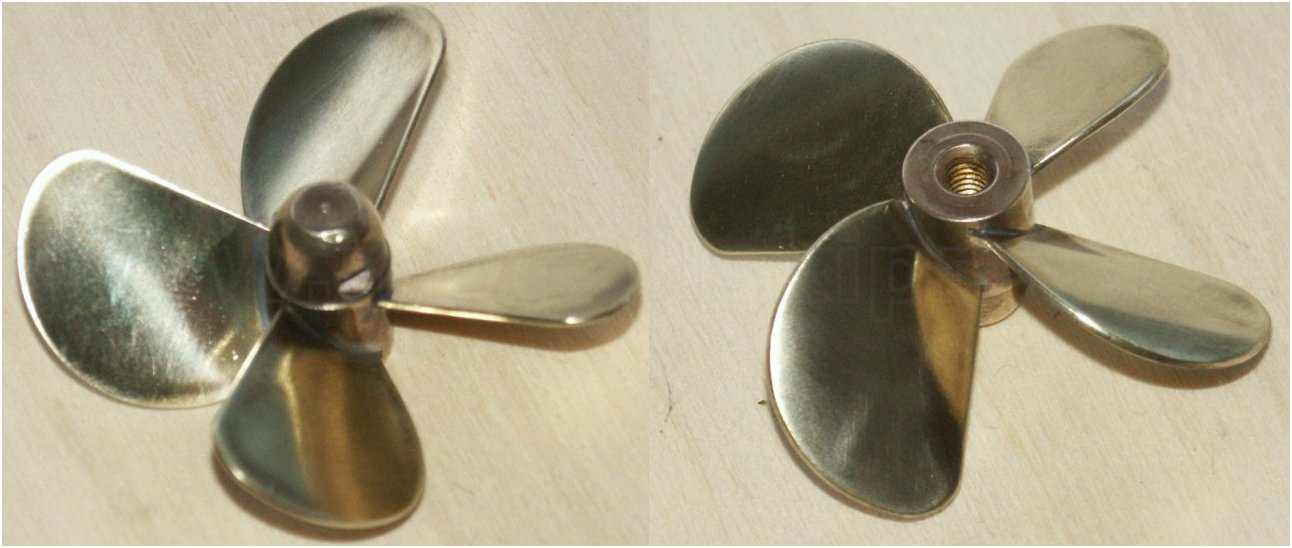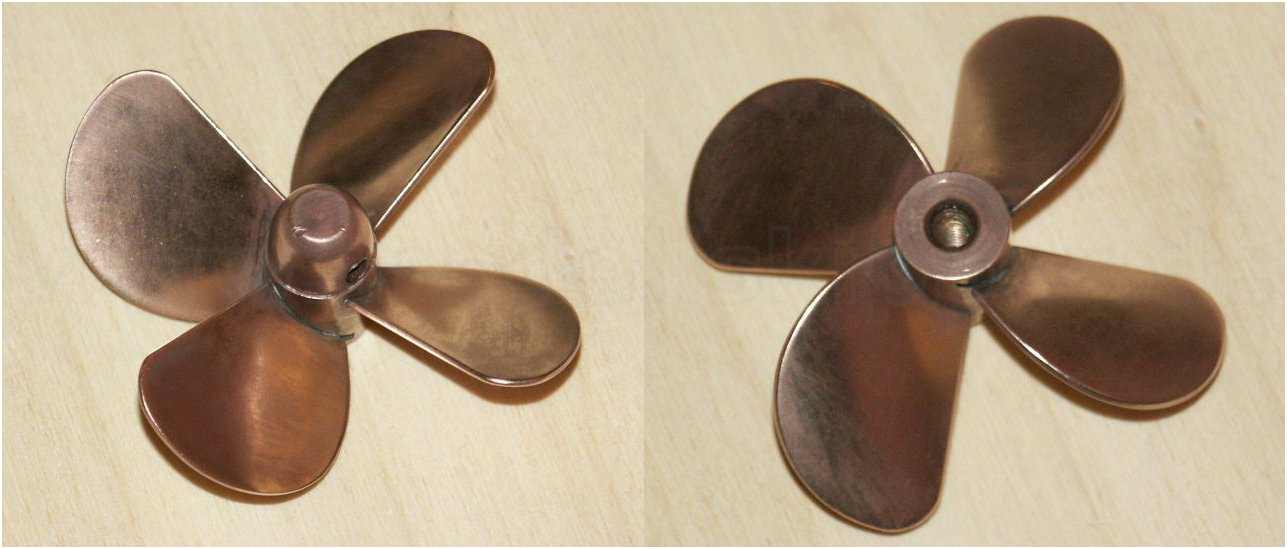 Normalerweise sind die Schiffsschrauben von originalen Schiffen nicht aus Messing, sondern aus Bronze. Bronze ist eine Legierung aus Kupfer und Zinn. Durch Anteil an Kupfer passiert es, dass sich die Schrauben nach längerer Zeit verfärben und ''Grünspan ansetzen'' und dies wollte ich an einem Modell nachbilden.