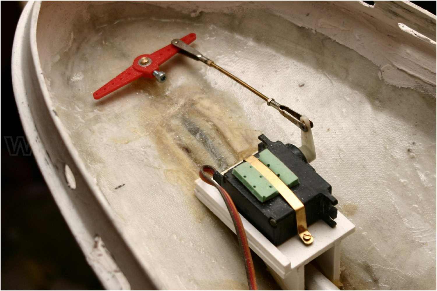 Bei dieser Lösung musste die Ruderanlenkung neben der in den Rumpf hinein ragenden Plicht herumgeführt werden.