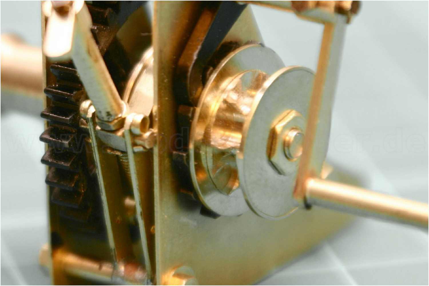 Beim Nachbau in größeren Maßstäben können auch kleinste Details dargestellt werden, wie z.B. der Splint am Kurbelgelenk.