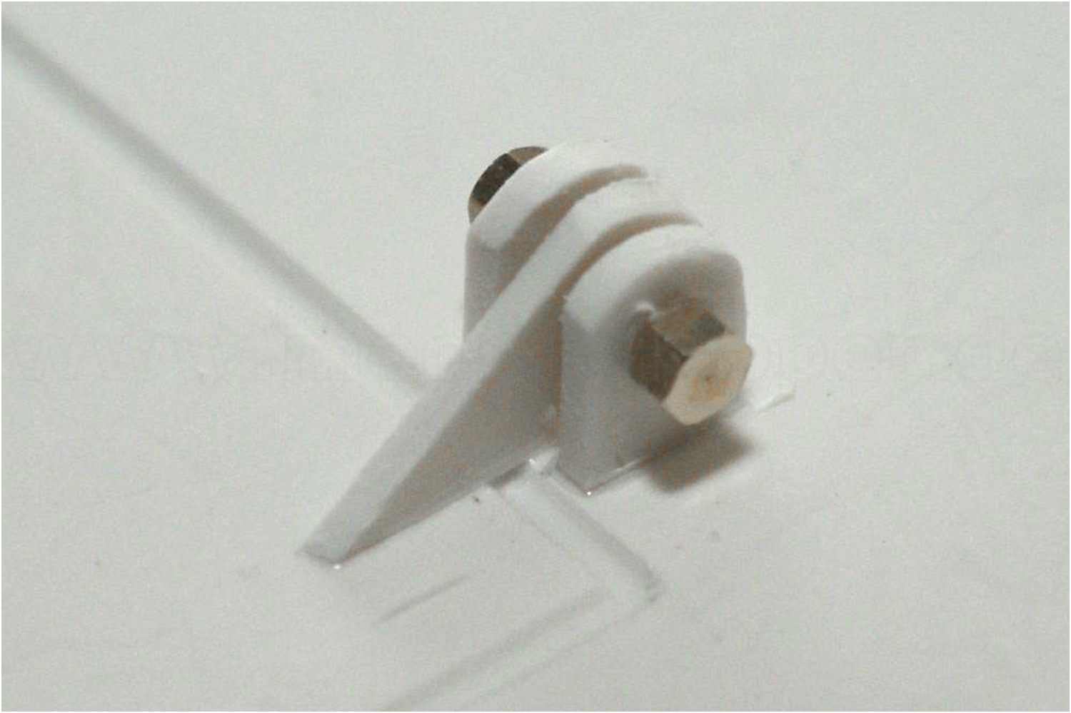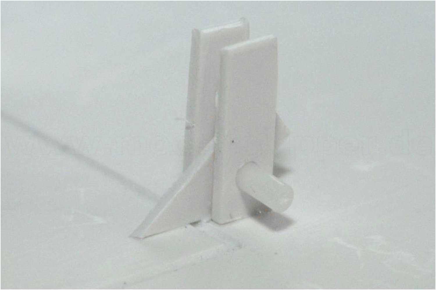 Der Scharnierbolzen ist ein dünnes Kunststoffrohr, z.B. aus einem Wegwerffeuerzeug. Man findet sie auch in Führungsrohren für Bowdenzüge, wie sie die Modellflieger verwenden.