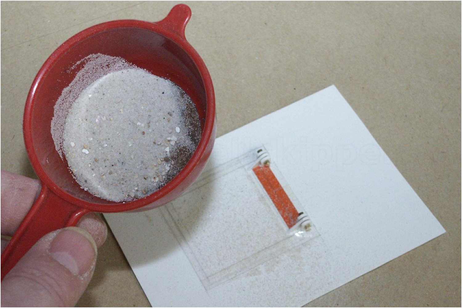 Durch die Lackierung lassen sich die Sandkörner nun nicht mehr wegwischen.