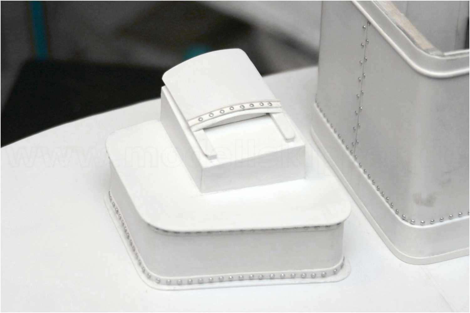 Oftmals liegen einem Bausatz komplette Aufbauten oder Teile davon als ''Tiefziehschalen'' bei. Hier am Beispiel des vorderen Niedergangs des Dampfschlepper Saturn von Graupner.