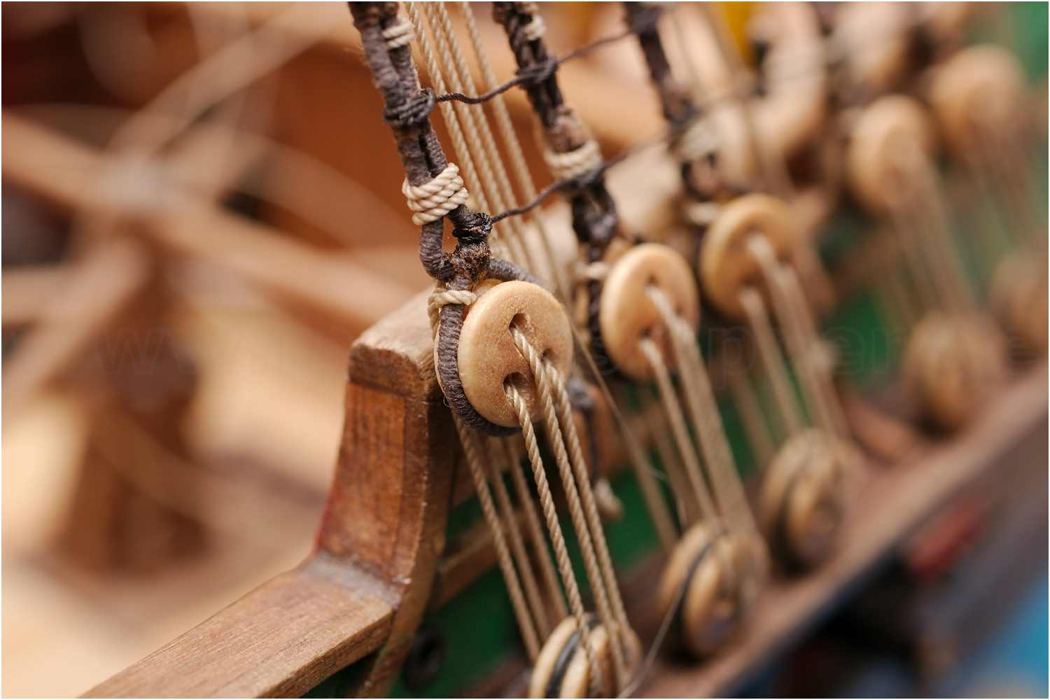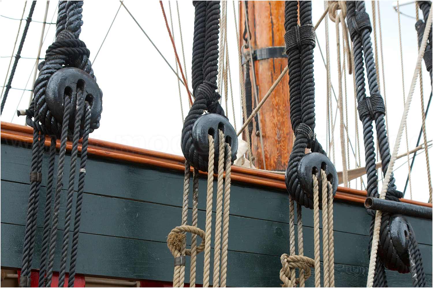 Für die Führung des Taljereeps sind an den Bohrungen kleine Kerben eingearbeitet.