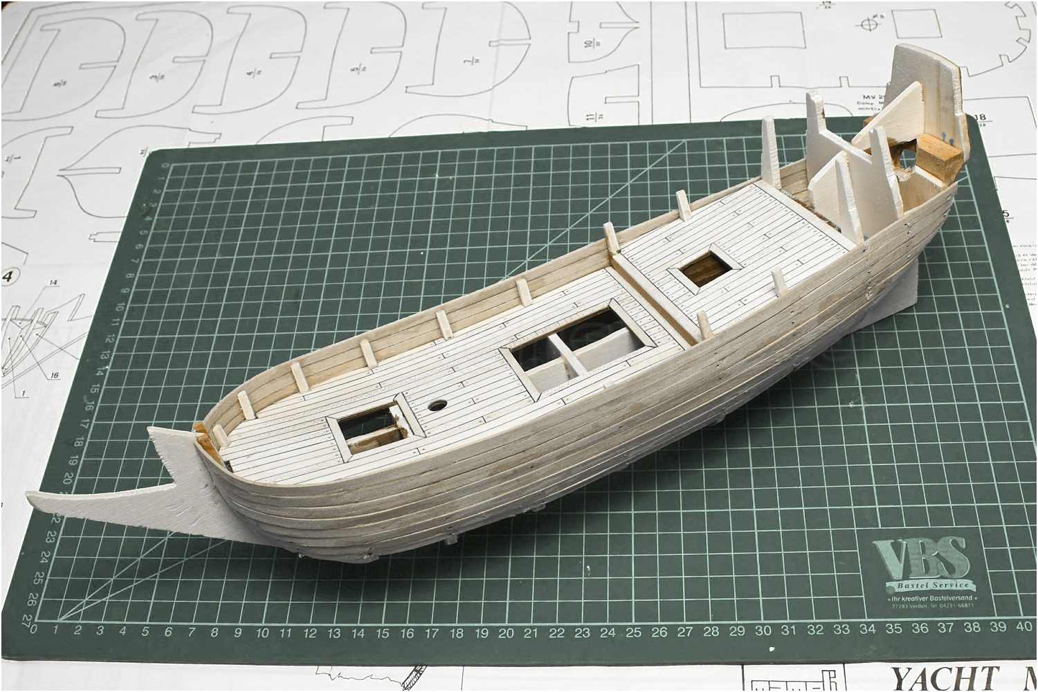 Es folgt das Ausfüllen der Seitenwände von Aufbauten und der Bereich des Schanzkleides.