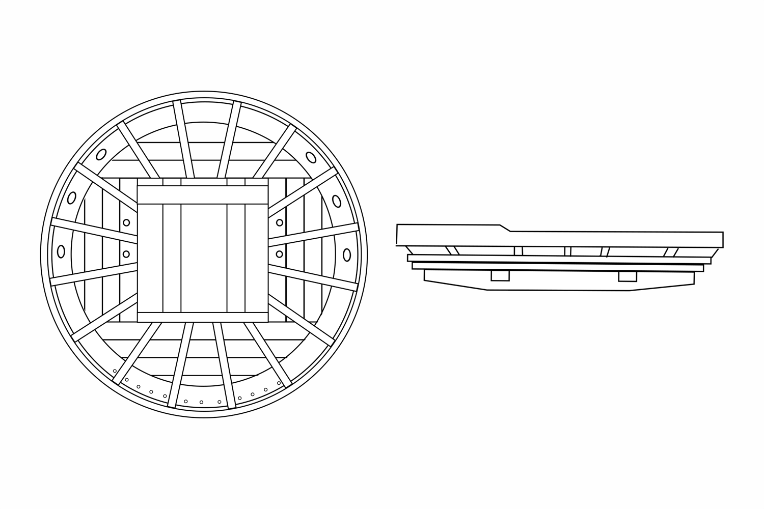 Auf diesem Boden ist oftmals ein Verstärkungsrahmen, der Marsrand, aufgesetzt, darüber stehen die Rippen, die den Marsring halten.