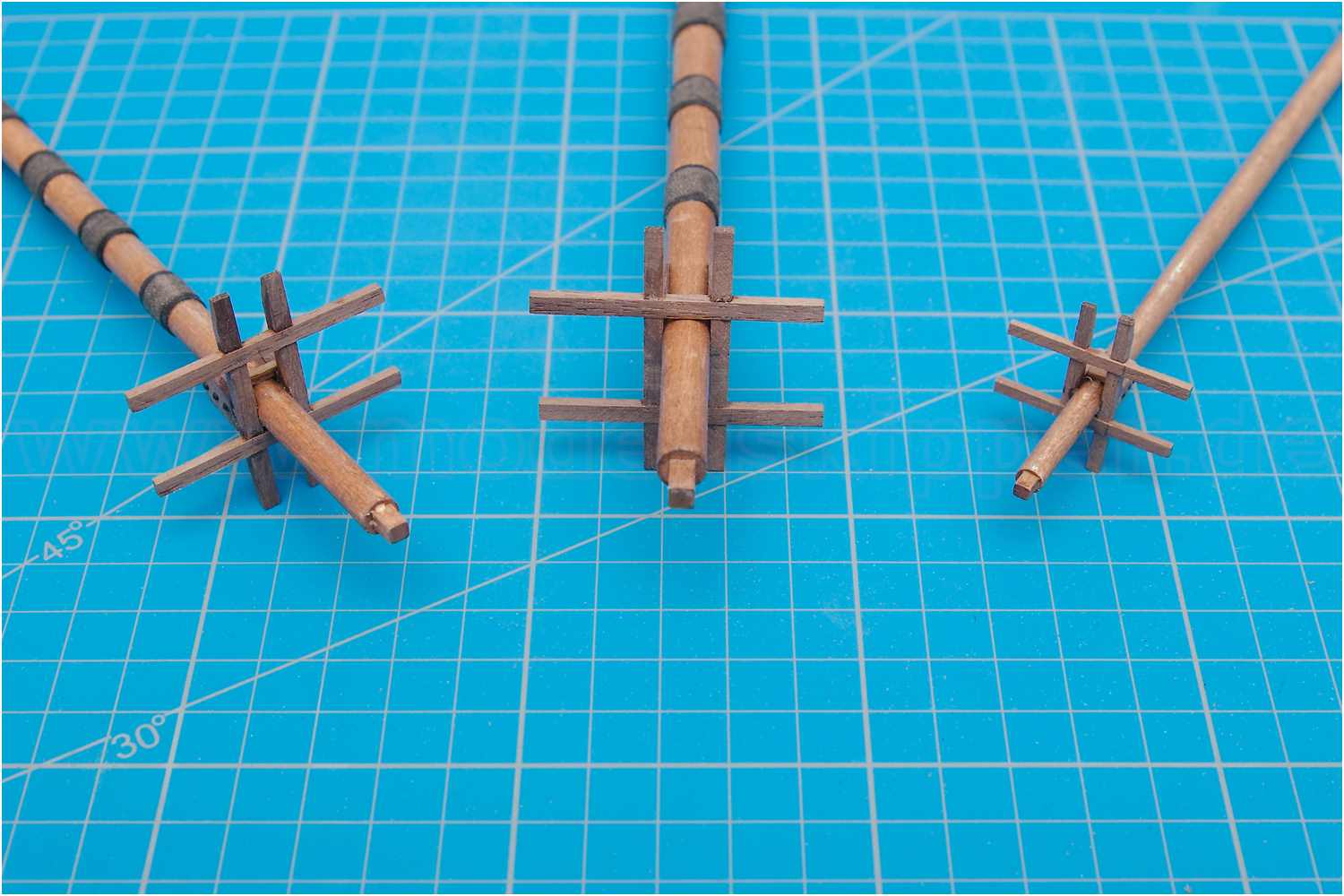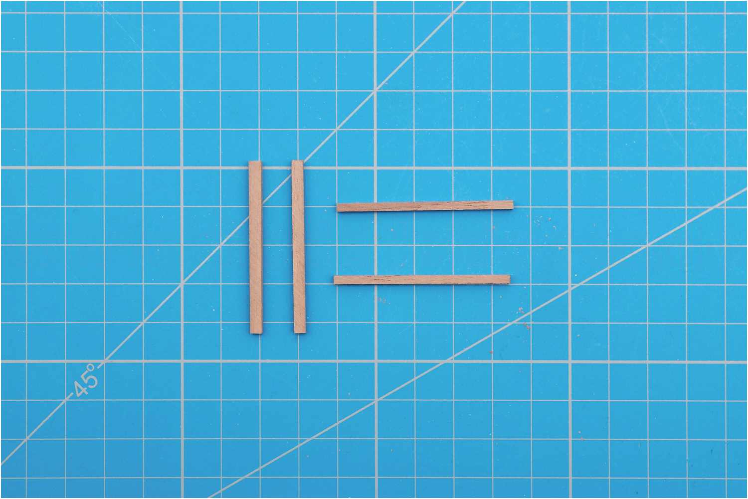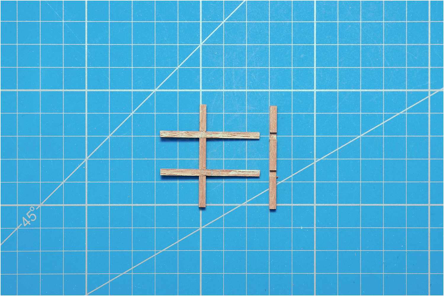 In die Längssalinge werden zwei Nuten eingefräst, in die die Quersalinge eingelegt werden. So entsteht eine Doppelkreuzkonstruktion, die später die Marsplattform trägt.