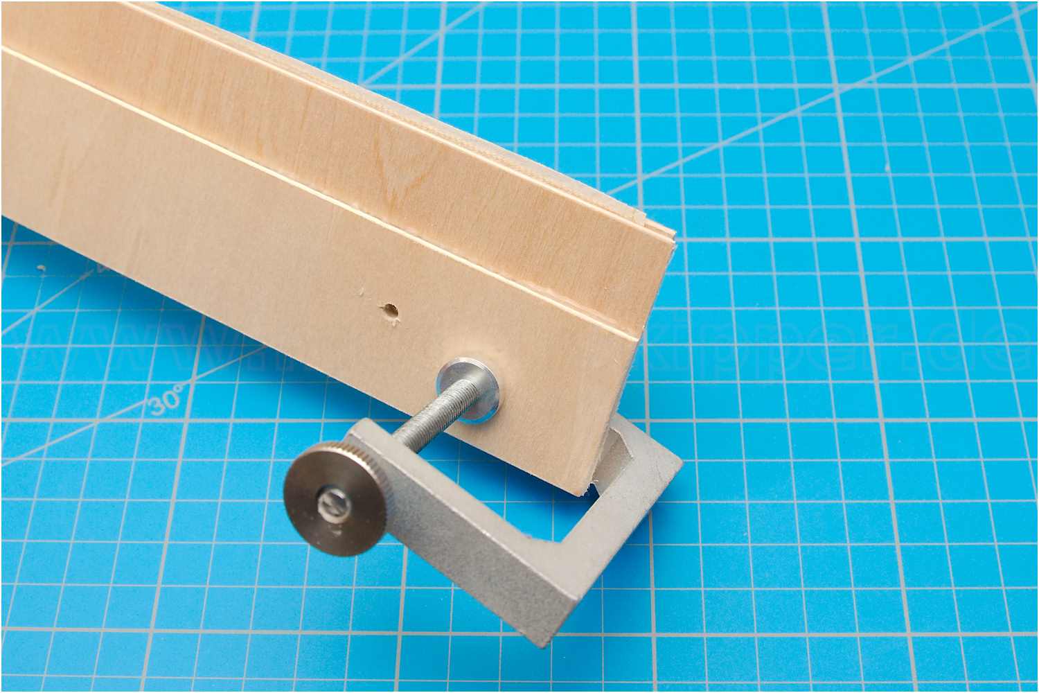 Dafür wurde eine Halterung aus zwei Sperrholzbrettchen gebaut.