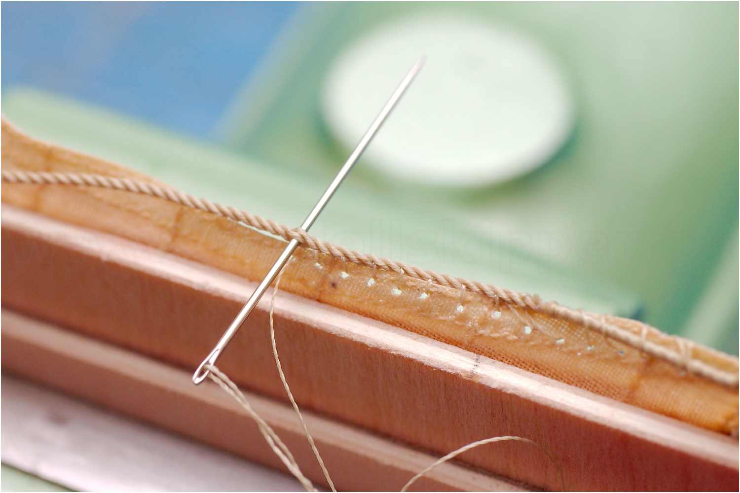 Da das Liek durch Kleber versiegelt wurde, sieht man die Löcher vom Nähen, diese schließt man z.B. durch Reiben mit dem Griff einer Pinzette.