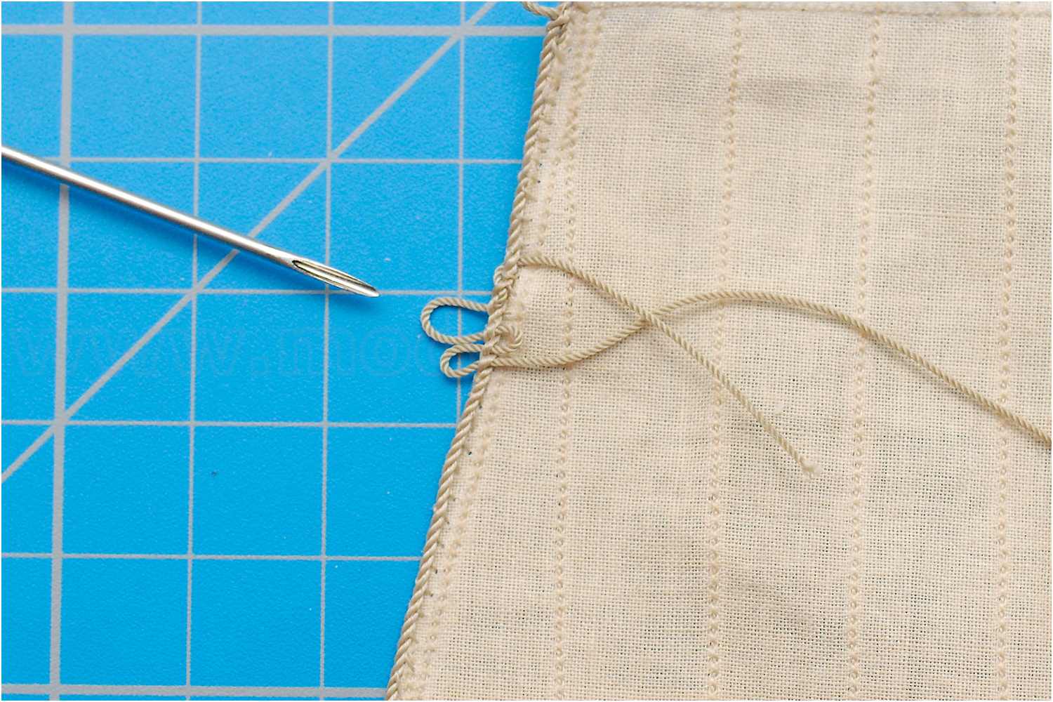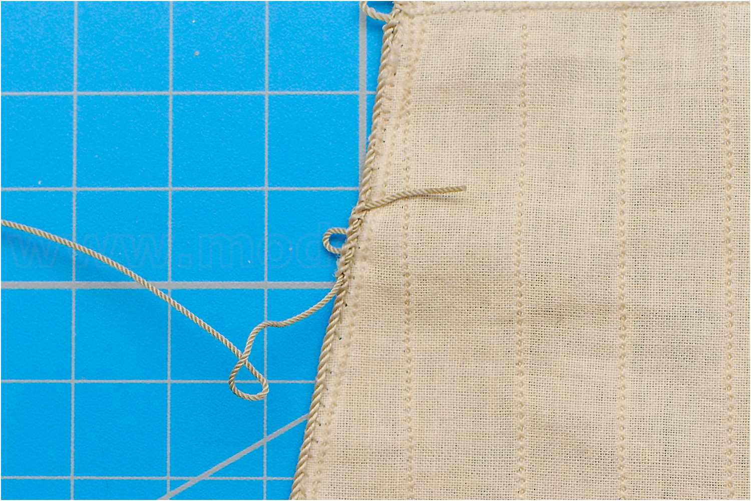Wie z.B. in NJ gezeigt, sticht man beim Nähen die Nadel durch das Liektau und erhält so ein recht saubere Ergebnis.
